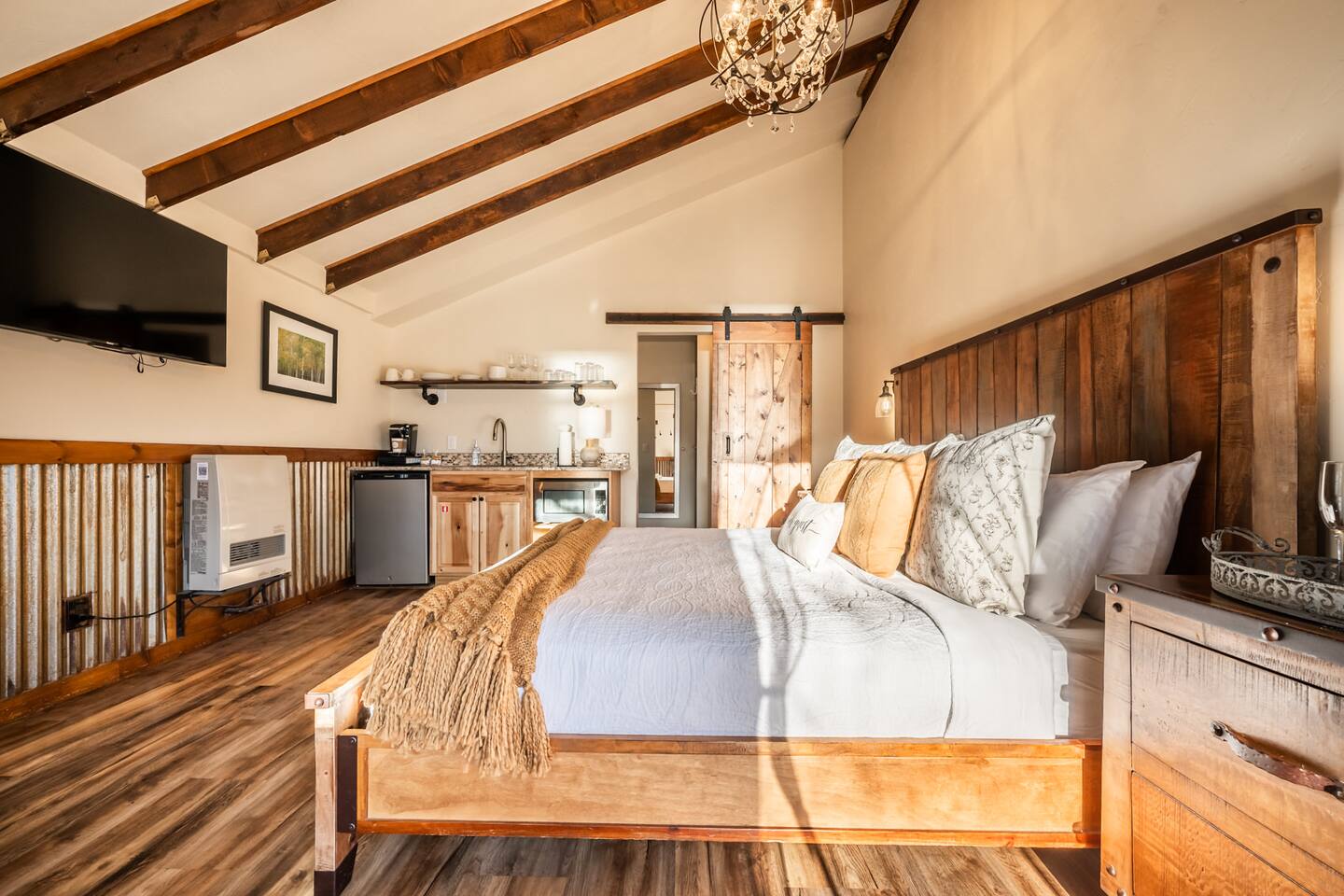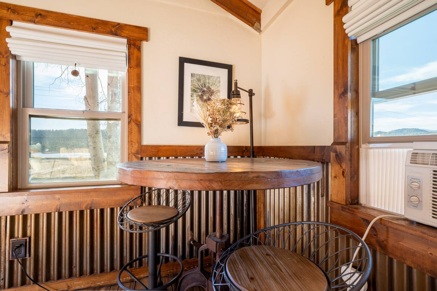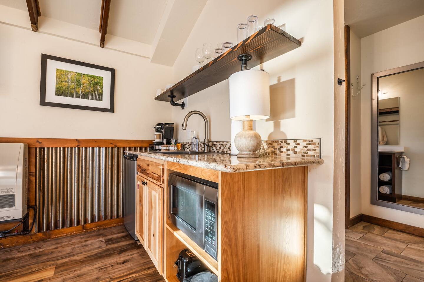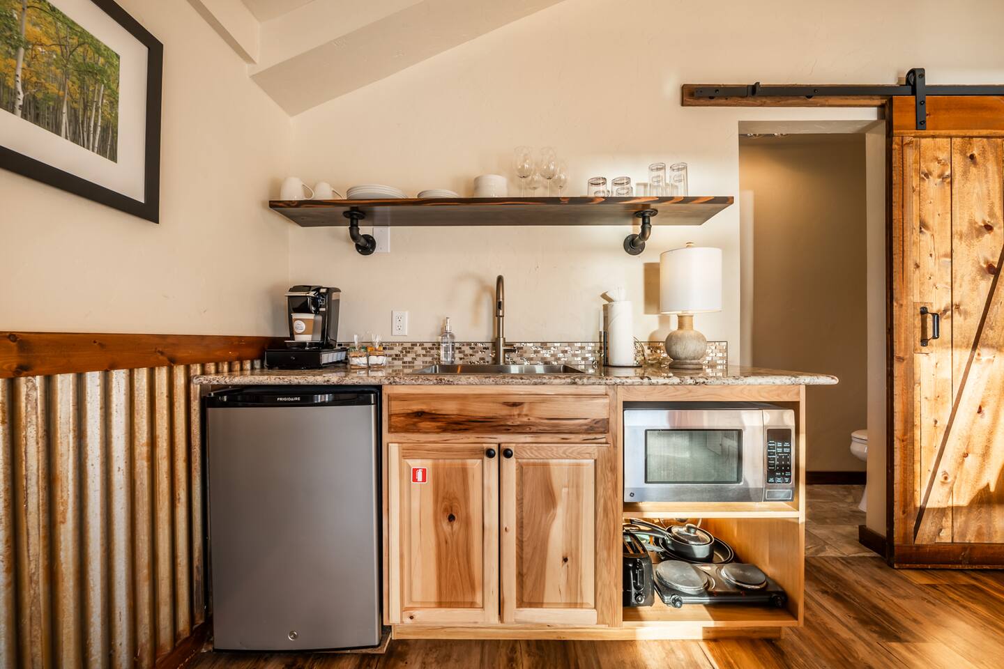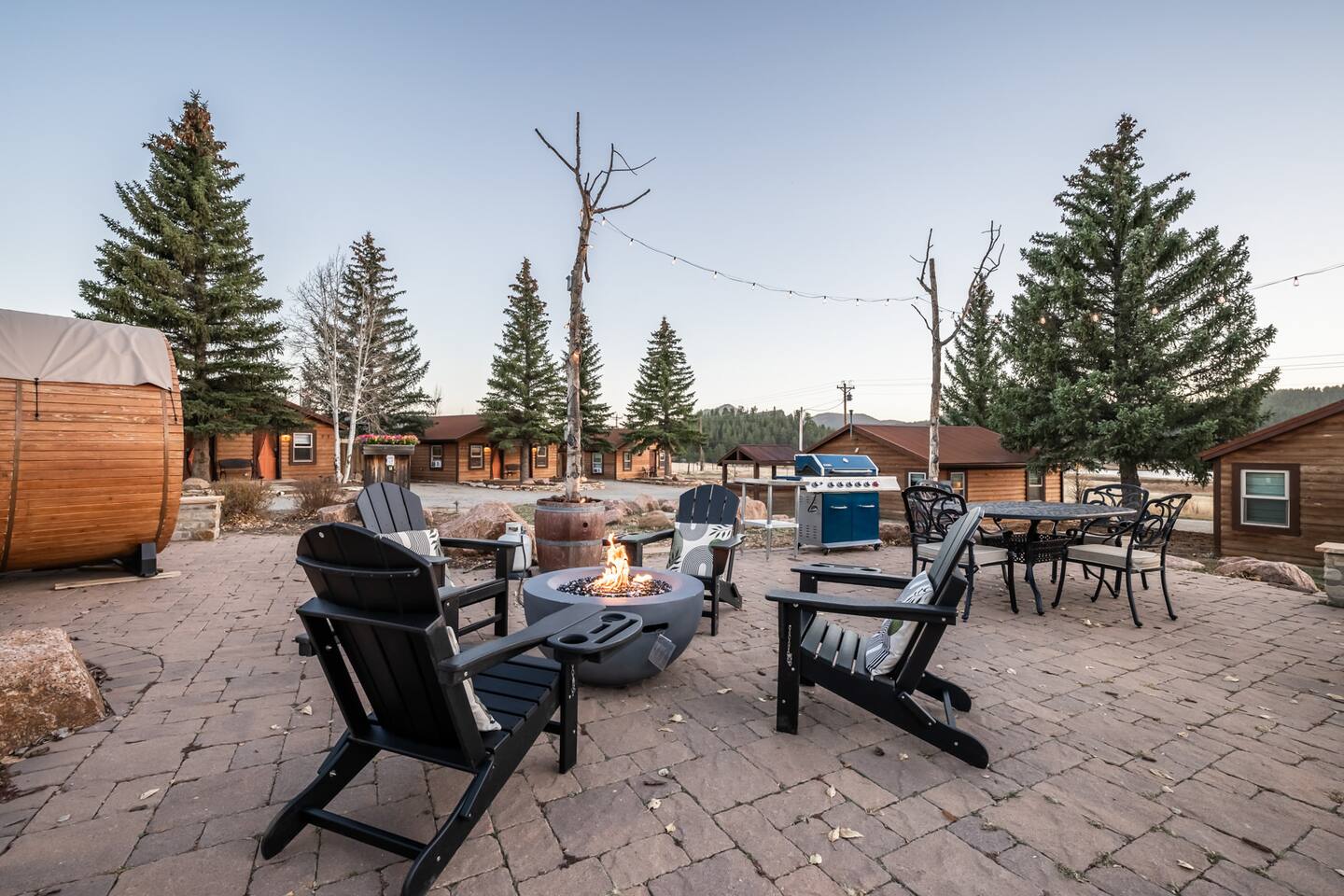 Looking for a romantic getaway to rediscover that special spark in your relationship? Look no further than Mountain River Lodge! Indulge in the ultimate escape by staying in your own private one-bedroom cabin, surrounded by the breathtaking wilderness of the Colorado forest near Lake George. Experience the best of both worlds - immerse yourself in the serene beauty of nature while still enjoying the convenience of modern amenities. Get ready for tranquility, adventure, and pure bliss in the heart of Colorado. ✼ Make Unforgettable Memories with Your Partner ✼ Our cabins are surrounded by breathtaking natural beauty, perfect for exploring and creating unforgettable memories with your partner. But that's not all - our central location provides easy access to a variety of exciting activities for couples. Immerse yourself in relaxation at the rejuvenating Cottonwood Hot Springs & Spa or the Mount Princeton Hot Springs & Spa. Try your luck at the thrilling Cripple Creek Casino or embark on an unforgettable hot air balloon ride with SunKiss Ballooning. Looking for a touch of elegance? Indulge in a delightful wine-tasting experience at the nearby Continental Divide Winery. Sip and savor exquisite flavors while creating memories that will last a lifetime. And when it's time to fill your belly, rest assured that our area is home to many highly reviewed restaurants. Treat yourself and your partner to a warm and delicious meal after a day of adventure. But wait, there’s more, ask us about our romance packages that are sure to add an extra touch of magic to your stay! Our team will take care of every detail, ensuring a truly unforgettable experience from the moment you arrive! ✧ Stargaze from the Patio in this Dark Sky Zone ✧ Mountain River Lodge in Lake George, Colorado, is nestled in a designated Dark Sky Zone, making it a premier destination for stargazing enthusiasts. To preserve the breathtaking night skies, all outdoor lighting on the property has been thoughtfully upgraded to Dark Sky Friendly fixtures—including dimmable string lights on the community patio—ensuring minimal light pollution and maximum celestial views. Guests can unwind under the stars from the comfort of the beautifully designed patio, complete with propane fire pits, grills, outdoor dining areas, and a stunning stone wood-burning fireplace. With the patio overlooking Lake George, it’s the perfect setting to enjoy peaceful lake views by day and the brilliance of the Milky Way by night. 🞻Unlock Your Getaway with Keyless Entry 🞻 Arriving at this charming cabin has never been simpler with our user-friendly keyless entry system. Your personalized door code will be sent to you via message as soon as the home is ready for check-in. Plus, we've got you covered with a boot tray for wet or muddy shoes. To make your stay even more convenient, we've provided a luggage rack for ease of access and organization. Sit back, relax, and enjoy a seamless start to your retreat! 🞻 Studio Living and Sleeping Area Fit for Royalty 🞻 Experience a luxurious sleep on your inviting and comfortable king-sized bed prepared with fresh sheets and bedding. In the corner, adjacent to the bistro table, you will find a floor lamp thoughtfully placed to provide additional lighting. Two chairs accompany the table, creating a cozy sitting area. You'll find a luggage rack to the side of the table to help you keep all of your clothing together. Stay organized with side tables featuring drawers, perfect for storing your personal belongings. The table nearest the door even includes a tray with all your beverage essentials, an ice bucket, wine opener, and water glasses. Entertainment options abound with a 43-inch LG Smart TV with apps for endless streaming possibilities, as well as DirectTV access for those live-channel lovers. Now, we should warn you—sometimes our "Rocky Mountain WiFi" can be a little shaky, inviting you to pause and enjoy the serenity of our remote surroundings. We've even thrown in some classic board and card games for whenever you're craving a dose of nostalgic fun! On the far side table, you'll find a box of tissues, ensuring you're well-prepared for any unexpected sniffles or sneezes. Additionally, we've included a digital alarm clock with power outlets and USB ports, allowing you to conveniently charge your electronic devices while keeping track of time. Create the perfect ambiance with our wall sconces, providing a soft and relaxing glow on either side of the bed. During your stay, your gas-powered wall heater will keep you warm and toasty, while a window AC is set up, we've also provided a stand-up fan that ensures you stay cool during warmer days. Your comfort is our priority in this welcoming cabin! 🞻Stay Refreshed in the Fully Equipped, Compact Kitchenette🞻 Experience the luxury of a fully equipped compact kitchenette. Our medium-sized mini-fridge offers ample space for all your perishables and beverages. Stock it with your favorite snacks and drinks to stay refreshed throughout your stay. But that's not all. The bedside table is equipped with a g00gle Hub smart display, giving you the power of convenience at your fingertips. Ask it commonly asked questions like "Hey g00gle, what are some popular local restaurants?" or "Hey g00gle, what's the weather forecast for tomorrow?" Get ready to satisfy your caffeine cravings with our convenient and stylish set-up. We've thoughtfully included a microwave and a Keurig coffee maker, accompanied by a small stainless steel pitcher for easy brewing of your favorite hot beverages. And that's not all! As a special surprise, we've left a few complimentary s'mores kits for you to enjoy by the fire. Indulge in this delightful touch that will enhance your cozy cabin experience and bring some sweetness to your stay. We can't wait for you to enjoy this little treat! For your safety, a fire extinguisher is conveniently placed under the sink, ensuring peace of mind in case of any
