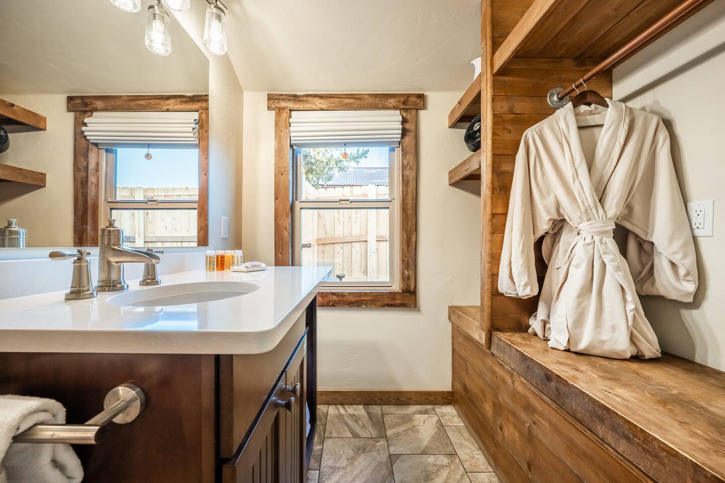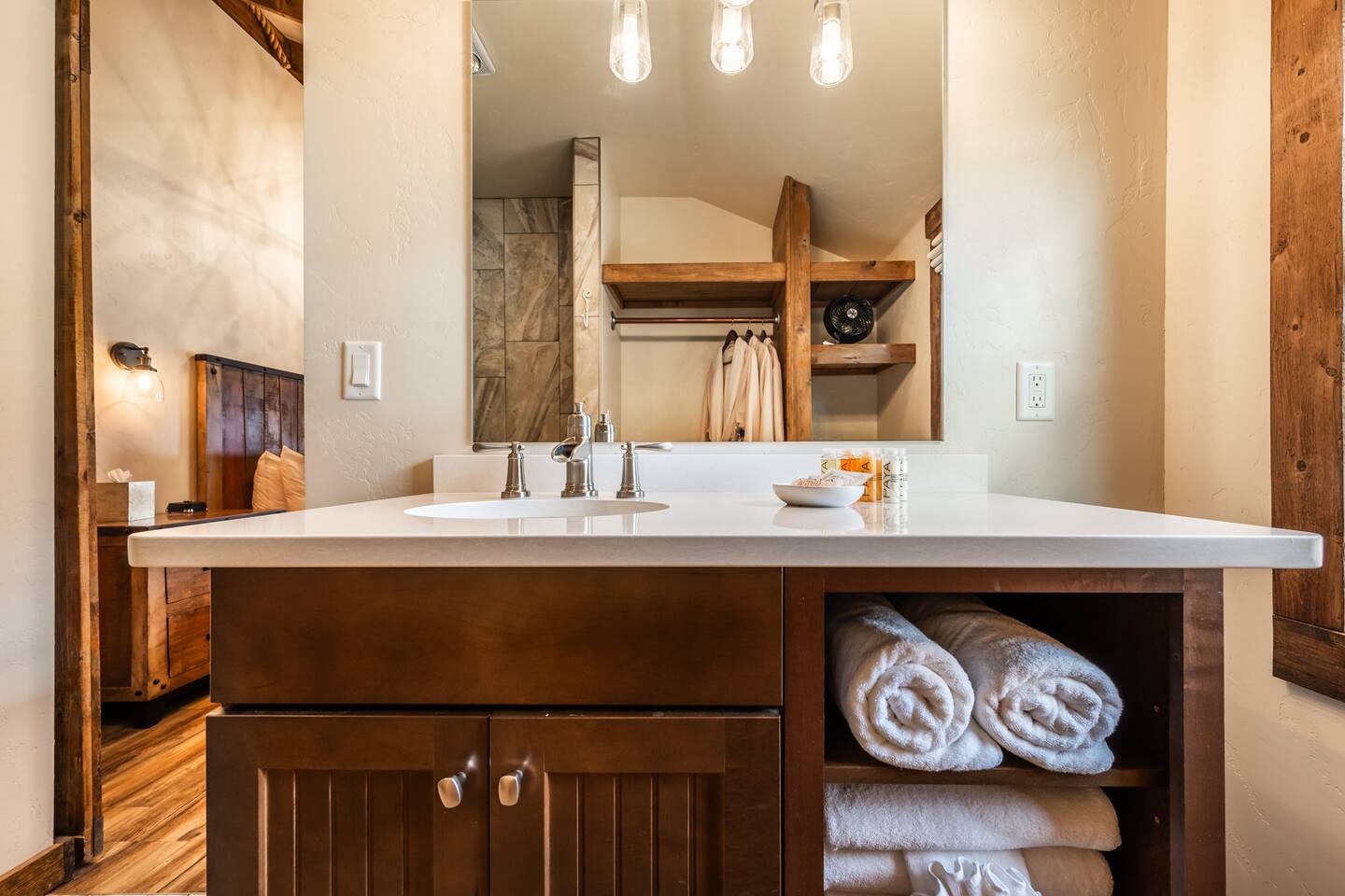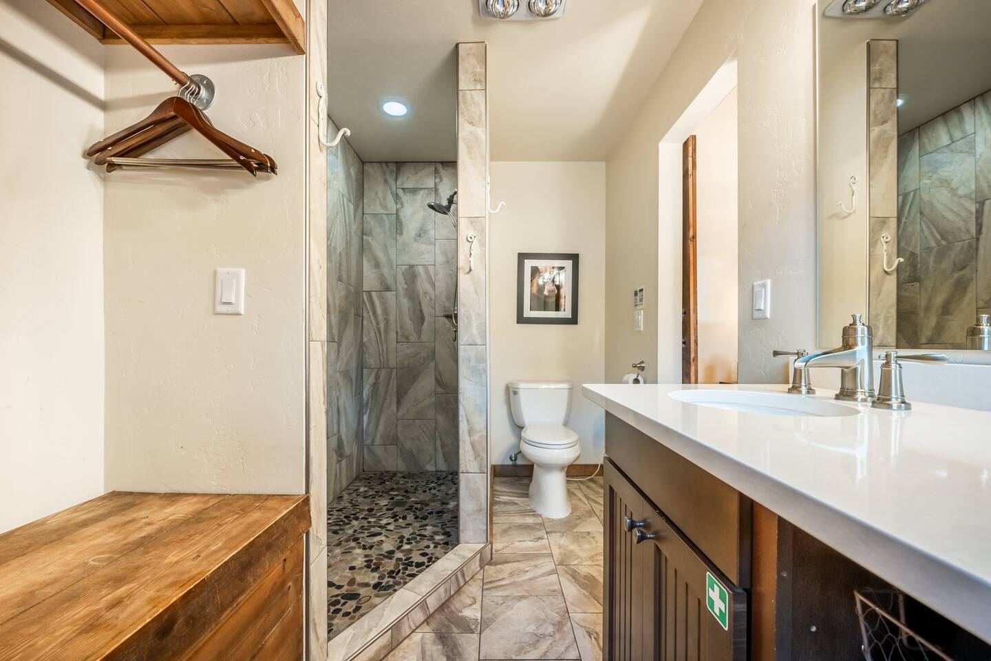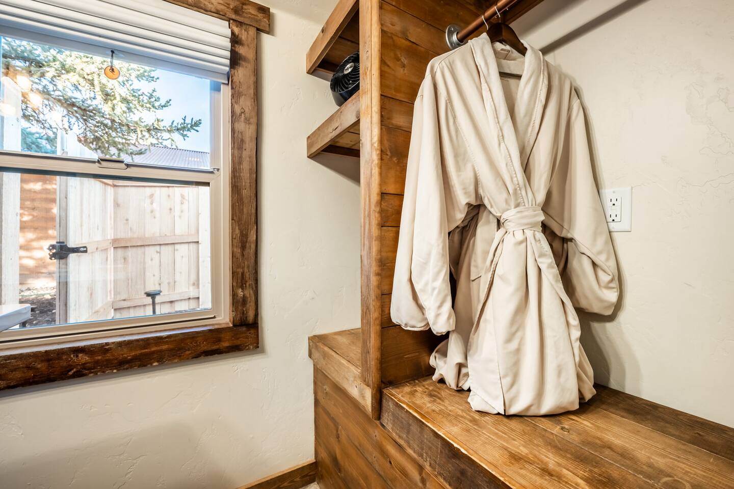 You will have exclusive access and private use of the full interior of your cabin. This cabin offers a rare feature that sets it apart from some of the other cabins—your very own fully fenced-in private backyard. Unlike the shared community patio available to all guests, this secluded outdoor space is reserved exclusively for your cabin. Outfitted with Adirondack chairs and a modern gas fire pit, the backyard is the perfect spot for cozy conversations, roasting marshmallows, or stargazing in the crisp mountain air. All guests at Mountain River Lodge have exclusive access to a fully stocked Community Game Hub, located just steps from the cabins. Inside, you'll find everything from cornhole, giant Connect 4, ladder toss, and pickleball paddles, to basketballs, footballs, tennis rackets, and more. The space is designed with play in mind—whether you're planning a full day of games with family or just want to grab some gear and head outside, it's all here for you. And if you're looking to break a sweat or challenge a friend to a match, there are tennis courts conveniently located right across the street from the property. Bring your rackets (or borrow ours) and enjoy a match with stunning mountain views as your backdrop. Also, enjoy shared access to the central brick patio and amenities including wood-burning fireplace, outdoor lounge and dining furniture, two propane fire pits, two commercial grills, and barrel wood sauna. Guests from all cabins are welcome to use this space, so please ensure your behavior and noise volume is appropriate and considerate of others, especially during quiet hours of 10pm to 8am. You will have one dedicated parking space directly next to your cabin. A dirt parking lot at the west end of the property can be used for additional or oversized vehicles, RVs, boats/trailers, ATVs, as well as any vehicles with a tendency or potential to leak automotive fluids. Please park wisely and be considerate of others sharing this space.