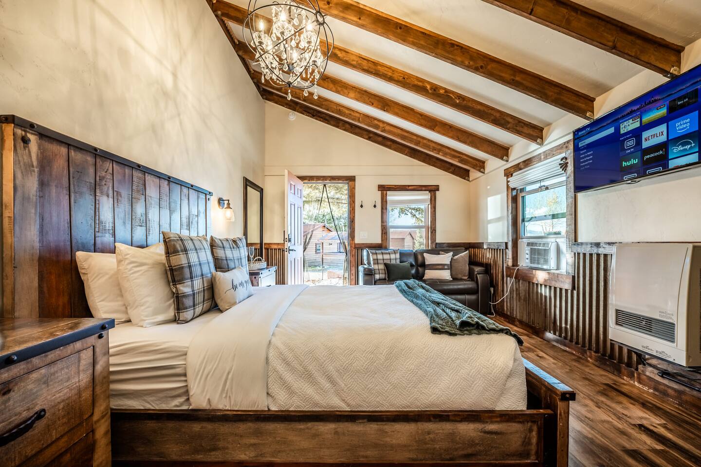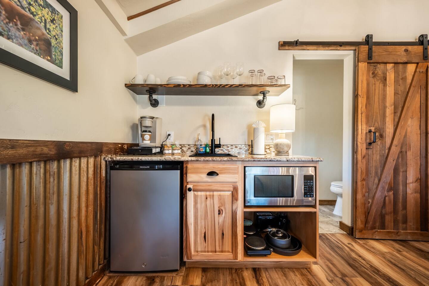 Escape to Mountain River Lodge & Cabins - Your Colorado Rockies Retreat! Discover the perfect blend of luxury and wilderness in the heart of the stunning Colorado Rockies at Mountain River Lodge & Cabins. Nestled in Lake George, CO, this is your chance to turn the majestic mountains into your personal playground. Our charming cabins offer rustic elegance, featuring beautiful decor, modern comforts, and updated furnishings for a truly five-star mountain getaway. Let the adventure begin as you immerse yourself in the warmth of our retreat, creating memories that will last a lifetime. ✼ Seamless Entry into Your Cozy Cabin ✼ No more worrying about keys or check-in restrictions. Our keyless entry system ensures a smooth arrival - simply punch in the code we've provided, and voila, you're in! The inviting front porch, adorned with a wrought-iron bench, beckons you to savor the crisp mountain air. Convenient fisherman's wader hooks by the door make it a breeze to hang your gear after a day exploring our nearby award-winning fishing spots. ✼ Comfort Unleashed in the Living Area ✼ Embrace relaxation on a plush leather sofa and dive into a world of entertainment with a 43-inch LG Smart TV, offering diverse streaming options. For the live-channel enthusiasts, DirectTV awaits. Embrace the occasional "Rocky Mountain WiFi" pause as an invitation to relish the tranquility of our remote surroundings. Classic board and card games are on standby for a dose of nostalgic fun. For groups of 3 or 4, the sofa transforms into a queen-size bed without compromising comfort. Fresh sheets, bedding, and pillows discreetly tucked inside ensure a regal slumber. Illuminate your space with a stylish floor lamp in the corner, and let the wonderful gas-powered wall heater keep you toasty. A stand-up fan awaits for those sunny days, providing a customizable breeze according to your preferences. ✼ Sleep Like Royalty ✼ The heart of your cabin, the cozy queen-sized bed, awaits. Immerse yourself in luxury with fresh sheets, plush bedding, and an abundance of fluffy pillows. Stylish wall sconces set the perfect mood for unwinding after a day of adventures. Two side tables with drawers stand ready to cradle your personal belongings. Quench your thirst with a convenient tray, ice bucket, wine opener, and water glasses, all within arm's reach. Expect the unexpected with tissues on one side table and a digital alarm clock with power outlets and USB ports for device charging. TV enthusiasts are catered to with remotes, a channel guide, and spare batteries. Enjoy complimentary earplugs for moments of serenity. A small trash basket in the corner and a handy luggage rack maintain order. ✼ Efficient Kitchenette for Culinary Delights ✼ Embark on a culinary adventure in our thoughtfully designed kitchenette. Enjoy a fully stocked kitchenette, with a two burner hot plate, pots and pans, strainer and more! Everything you could possibly need for cooking a meal, you will find in this kitchenette. A medium-sized mini-fridge eagerly awaits your perishables and beverages. Stock it with your favorite snacks for a refreshing stay. A microwave stands ready for your heating and reheating needs. As a sweet surprise, enjoy complimentary handmade s'mores kits for fireside indulgence. A fire extinguisher beneath the counter ensures safety, and a table lamp provides extra lighting. Our Keurig coffee maker, complete with a curated tray of essentials, guarantees a delightful start or end to your day. A G00gle Hub smart display on the bedside table provides the power of convenience at your fingertips. Numerous commands are at your disposal, pay music, produce a variety of "white noise" or sleep sounds, set alarms, ask questions about the local area, or the weather forecast. For your convenience, there's a table lamp on the counter, ready to provide extra lighting when needed. Need to clean up? No problem! We've got you covered with a handy kitchen towel for any spills or messes. And for your safety, we also have a fire extinguisher conveniently placed under the sink, just in case. ✼ Unwind Like Royalty in the Bathroom ✼ Step into our charming bathroom, where rustic ambiance meets modern convenience. The sliding barn-style door opens to a vanity featuring a pump-style faucet and a generously lit, spacious mirror. Abundant counter space ensures an effortless grooming routine. The spa-like stand-up shower with a luxurious tile surround offers an invigorating experience, complete with a removable showerhead wand for customized comfort. Expect nothing but the best in bathroom essentials: fresh towels, shampoo, conditioner, body gel, and even two luxurious robes and complimentary slippers for the ultimate in comfort. A wood bench area with ample hangers, a fabric steamer, a hair dryer, and additional amenities cater to your every need. The heated and lighted toilet seat adds a touch of luxury, with a toilet brush, plunger, and trash can for added convenience. ✼ Private Backyard Retreat ✼ This cabin offers a rare feature that sets it apart from some of the other cabins on site—your very own fully fenced-in private backyard. Unlike the shared community patio available to all guests, this secluded outdoor space is reserved exclusively for your cabin. Whether you're sipping your morning coffee or winding down by the fire pit under the stars, you'll enjoy complete privacy and peace. Outfitted with Adirondack chairs and a modern gas fire pit, the backyard is the perfect spot for cozy conversations, roasting marshmallows, or stargazing in the crisp mountain air. The tall privacy fence adds a sense of seclusion while still letting you soak in the scenic views of the surrounding trees and peaks. It’s your own slice of Colorado—quiet, inviting, and just steps from the comfort of the cabin ✼ Community Game Hub + Tennis Courts ✼ Get ready for fun! Guests at Mountain River Lodge have exclusive access to a fully stocked Community Game Hub, loc
