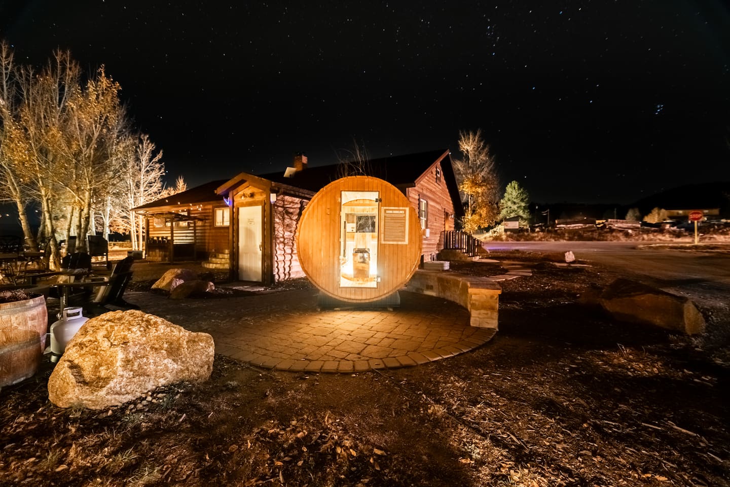 ☾ ✩ Dark Sky Zone: All exterior lighting is "Dark Sky Friendly," allowing for stunning views of the Milky Way in this designated Dark Sky area ☾ ✩ ✧Community Patio: Outdoor Stone Fireplace, Propane Fire pits & String Lights ✧Barrel Sauna ✧Grill ✧Game Hub: Corn hole + more! ✧LG Smart TV: Cable & Streaming Apps ✧Fully Stocked Kitchenette ✧BR w/ a Heated Toilet Seat ✧Minutes to Florissant Fossil Beds, 11 Mile Reservoir, Colorado Wolf and Wildlife Center + Mueller State Park. Walk to 11 Mi Canyon.