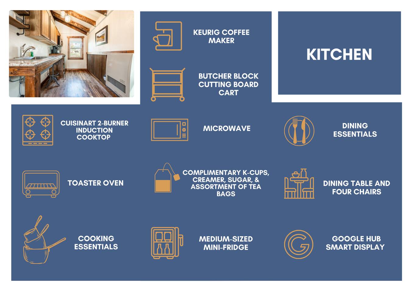 - Kitchen Space where guests can cook their own meals