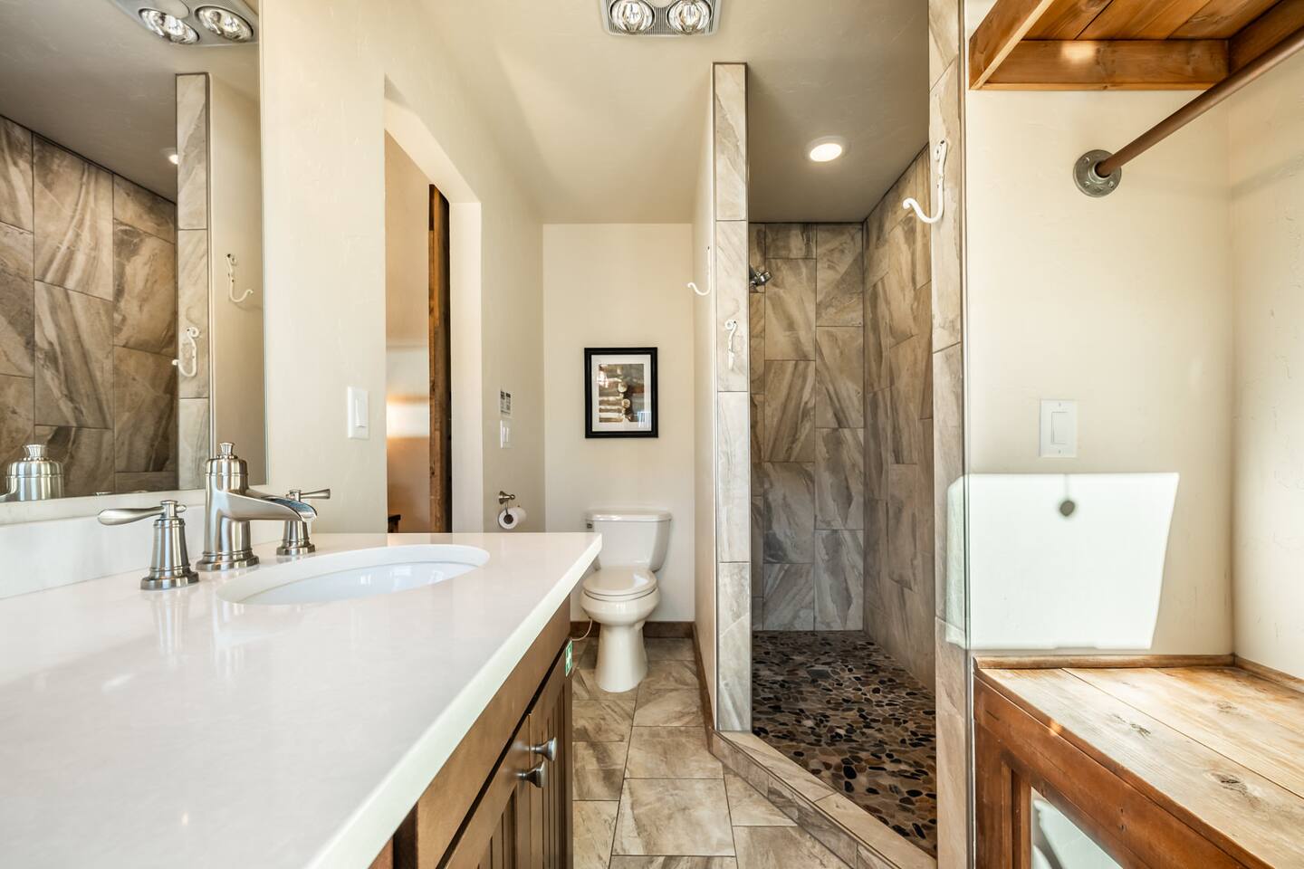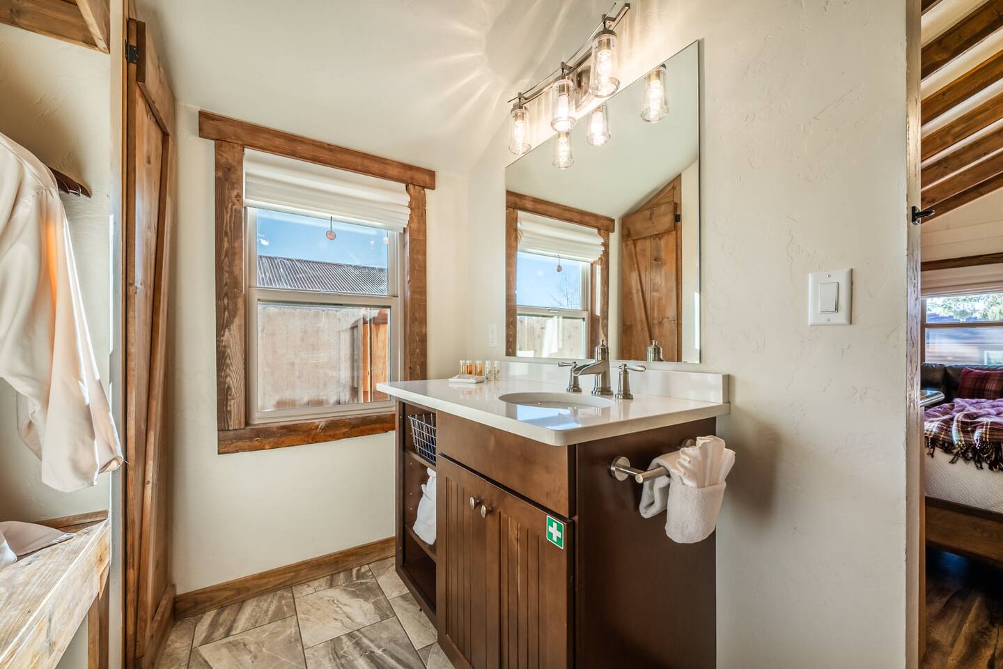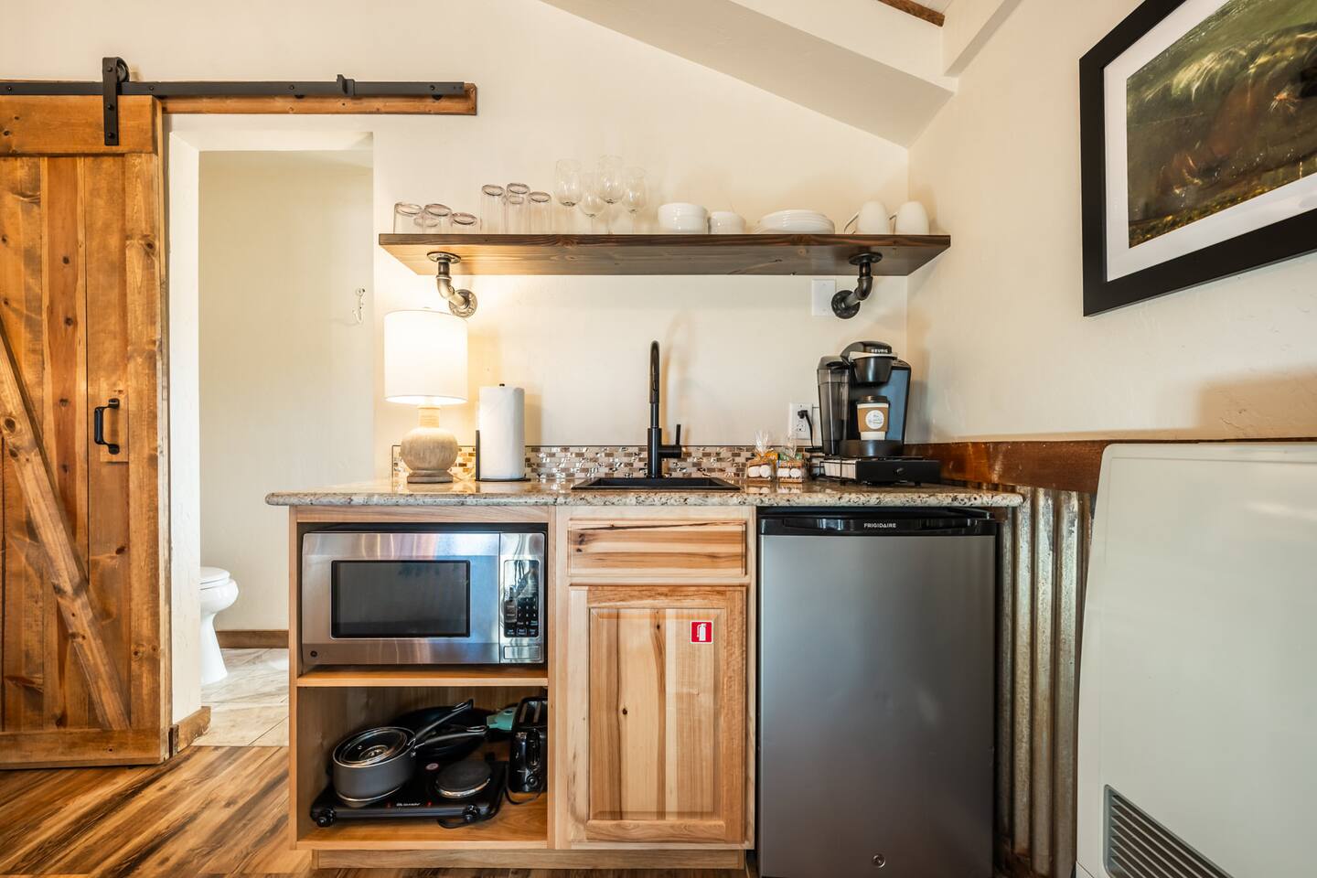 Welcome to Mountain River Lodge & Cabins, where you can experience the breathtaking beauty of the Colorado Rocky Mountains. Surround yourself with untouched nature and be captivated by the refreshing mountain breeze. If you're an adventure enthusiast, you'll love our conveniently located lodge nestled amidst thrilling experiences just waiting to be conquered! Our cabins exude rustic elegance, with stunning decor, modern amenities, and updated furnishings, ensuring a five-star mountain getaway. Get ready to embark on unforgettable adventures! ◈ Hike & Bike with Epic Views ◈ Embrace the thrill of high-altitude hiking expeditions or experience the rush of speeding down exhilarating mountain bike trails. Feel the serenity as you trek through picturesque alpine meadows or enjoy a relaxing ride along the scenic Colorado River bed. The choice is yours, and it's all right here! Looking to conquer a "fourteener"? Look no further than nearby Mueller State Park and Lost Creek Wilderness where you'll find plenty of majestic mountains towering over 10,000 feet in elevation as well as our favorite 14er, Pikes Peak. It's a must-do for any adventurer with a bucket list! But that's not all - we also have a variety of top-notch trails to explore, catering to all levels of experience. From the The famous Crags trail, to Pancake Rocks to the Dome Rock Trail, there's something for everyone. And if mountain biking is your passion, you're in luck! Our lodge is surrounded by incredible biking trails, including the Midland Trail and a ten-mile loop through the stunning northern area of Mueller State Park. Whether you're a seasoned hiker or a beginner looking for family-friendly trails, we have it all! ◈ Unlock Your Home Away From Home ◈ Bid farewell to key hassles and restrictive check-in times. Our keyless entry system ensures a hassle-free arrival—simply input the provided code, and your mountain sanctuary awaits. The inviting front porch beckons with a wrought-iron bench, offering a perfect spot to savor the crisp mountain air. Convenient fisherman's wader hooks nearby cater to your gear after a day exploring the nearby award-winning fishing spots. ◈ Comfort Unleashed in the Living Area ◈ Relax on a sumptuous leather sofa and delve into entertainment with a 43-inch LG Smart TV, offering a spectrum of streaming options. For aficionados of live channels, Direct TV awaits. Now, we should warn you—sometimes our "Rocky Mountain WiFi" can be a little shaky, inviting you to pause and enjoy the serenity of our remote surroundings. We've even thrown in some classic board and card games for whenever you're craving a dose of nostalgic fun! We've also upgraded this cabin to Starlink wifi, to reduce interruptions in your entertainment. For groups of 3 or 4, the sofa transforms into a queen-size bed without compromising comfort. Fresh sheets, bedding, and pillows discreetly tucked inside ensure a regal slumber. Illuminate your space with a stylish floor lamp in the corner, and let the wonderful gas-powered wall heater keep you toasty. A window-AC and a stand-up fan awaits for those sunny days, providing a customizable breeze according to your preferences. ◈ Sleep Like a Baby ◈ The heart of your cabin, the cozy queen-sized bed, awaits. Immerse yourself in luxury with fresh sheets, plush bedding, and an abundance of fluffy pillows. Stylish wall sconces set the perfect mood for unwinding after a day of adventures. Two side tables with drawers stand ready to cradle your personal belongings. Expect the unexpected with tissues on one side table and a digital alarm clock with power outlets and USB ports for device charging. TV enthusiasts are catered to with remotes, a channel guide, and spare batteries. Enjoy complimentary earplugs for moments of serenity. A small trash basket in the corner and a handy luggage rack maintain order. ◈ Efficient Kitchenette for Culinary Delights ◈ Embark on a culinary adventure in our thoughtfully designed kitchenette. You will find everything you need to cook a meal. Hot plates, pots and pans, a strainer, knives, measuring utensils, a blender and even a waffle maker! A medium-sized mini-fridge eagerly awaits your perishables and beverages. Stock it with your favorite snacks for a refreshing stay. A microwave stands ready for your heating and reheating needs. As a sweet surprise, enjoy complimentary handmade s'mores kits for fireside indulgence. Our Keurig coffee maker, complete with a curated tray of essentials, guarantees a delightful start or end to your day. A G00gle Hub smart display on the bedside table provides the power of convenience at your fingertips. Numerous commands are at your disposal to play music, produce a variety of "white noise" or sleep sounds, set alarms, or ask questions about the local area and weather forecast. For your convenience, there's a table lamp on the counter, ready to provide extra lighting when needed. Need to clean up? No problem! We've got you covered with a handy kitchen towel for any spills or messes. And for your safety, we also have a fire extinguisher conveniently placed under the sink, just in case. ◈ Freshen Up Like Royalty in the Bathroom ◈ Step into our charming bathroom, where rustic ambiance meets modern convenience. The sliding barn-style door opens to a vanity featuring a pump-style faucet and a generously lit, spacious mirror. Abundant counter space ensures an effortless grooming routine. The spa-like stand-up shower with a luxurious tile surround offers an invigorating experience, complete with a removable showerhead wand for customized comfort. Expect nothing but the best in bathroom essentials: fresh towels, shampoo, conditioner, body gel, and even two luxurious robes and complimentary slippers for the ultimate in comfort. A wood bench area with ample hangers, a fabric steamer, a hair dryer, and additional amenities cater to your every need. The heated and lighted toilet seat adds a touch of luxury! ◈ Private Back