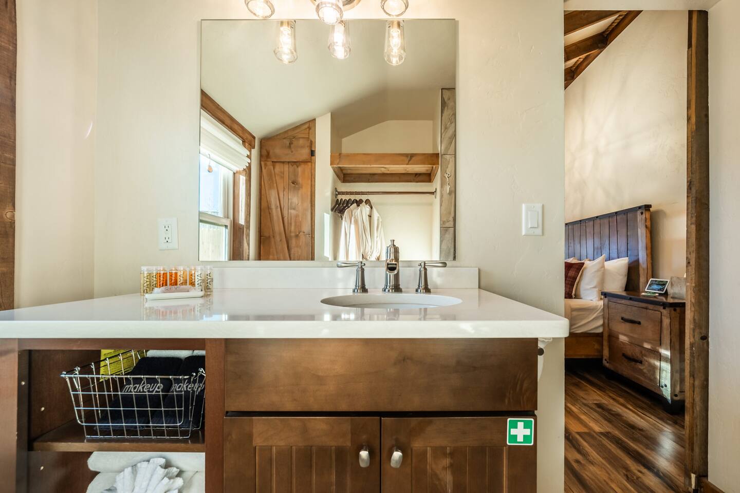 You will have exclusive access and private use of the full interior of your cabin. This cabin offers a rare feature that sets it apart from some of the other cabins—your very own fully fenced-in private backyard with barrel wood sauna. Unlike the shared community patio available to all guests, this secluded outdoor space is reserved exclusively for your cabin. Outfitted with barrel wood sauna, Adirondack chairs and a modern gas fire pit, the backyard is the perfect spot for cozy conversations, roasting marshmallows, or stargazing in the crisp mountain air. All guests at Mountain River Lodge have exclusive access to a fully stocked Community Game Hub, located just steps from the cabins. Inside, you'll find everything from cornhole, giant Connect 4, ladder toss, and pickleball paddles, to basketballs, footballs, tennis rackets, and more. The space is designed with play in mind—whether you're planning a full day of games with family or just want to grab some gear and head outside, it's all here for you. And if you're looking to break a sweat or challenge a friend to a match, there are tennis courts conveniently located right across the street from the property. Bring your rackets (or borrow ours) and enjoy a match with stunning mountain views as your backdrop. Also, enjoy shared access to the central brick patio and amenities including wood-burning fireplace, outdoor lounge and dining furniture, two propane fire pits, two commercial grills, and barrel wood sauna. Guests from all cabins are welcome to use this space, so please ensure your behavior and noise volume is appropriate and considerate of others, especially during quiet hours of 10pm to 8am. You will have one dedicated parking space directly next to your cabin. A dirt parking lot at the west end of the property can be used for additional or oversized vehicles, RVs, boats/trailers, ATVs, as well as any vehicles with a tendency or potential to leak automotive fluids. Please park wisely and be considerate of others sharing this space.
