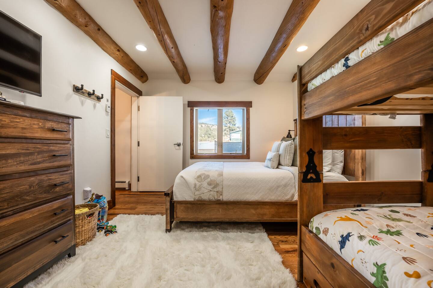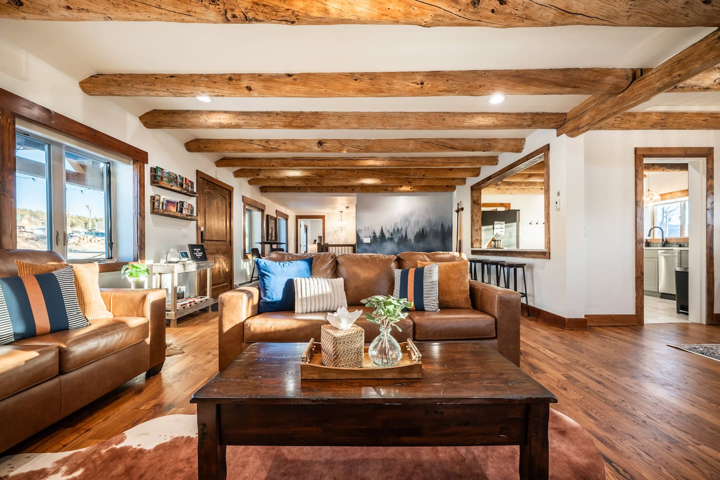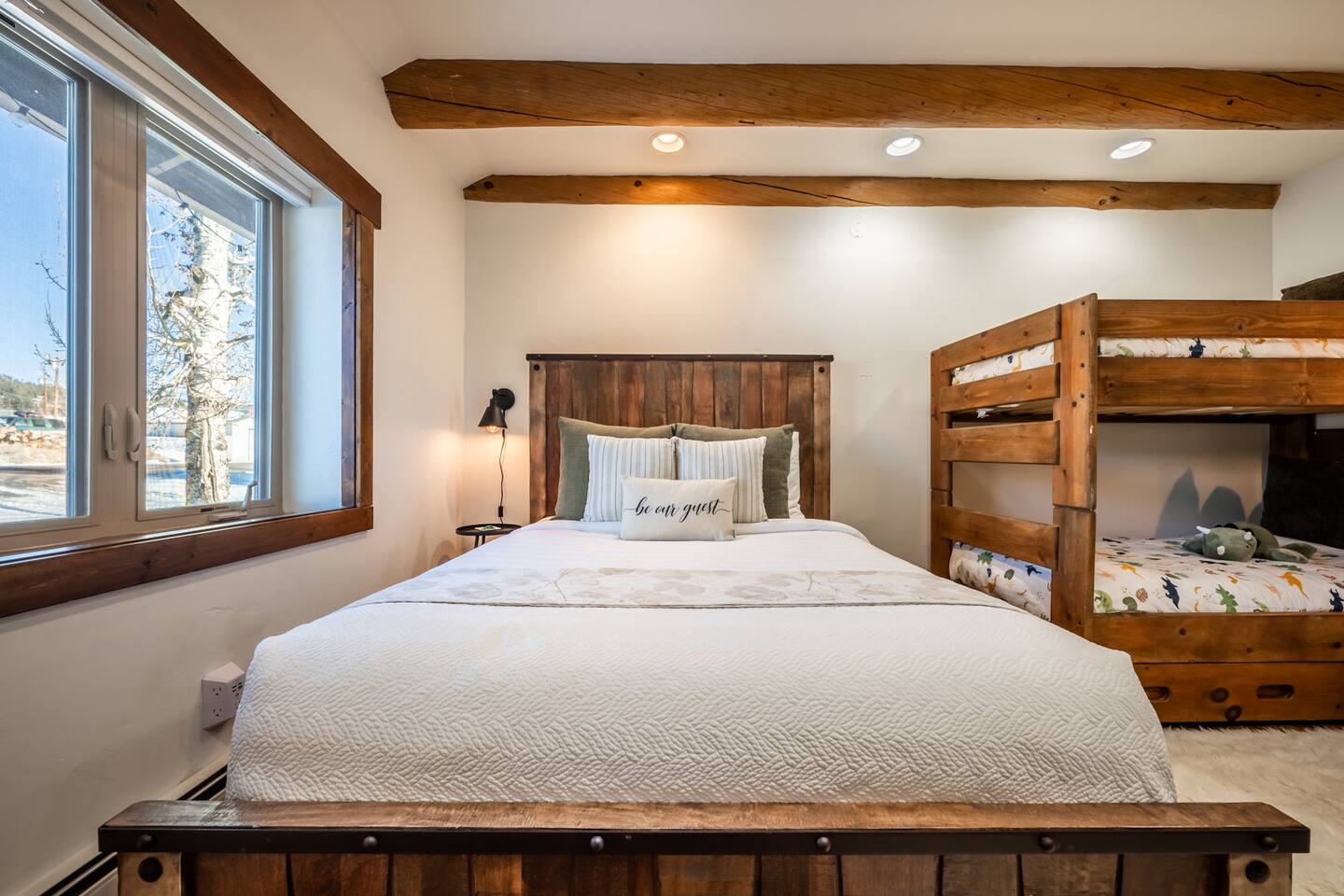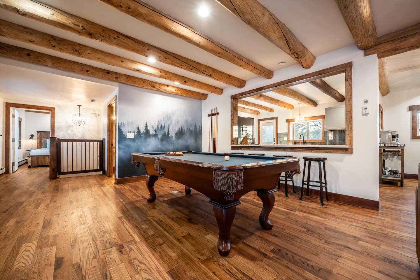 Welcome to Mountain River Lodge & Cabins, where you can experience the breathtaking beauty of the Colorado Rocky Mountains. Escape to our spacious mountain lodge, where comfort and fun come together in a truly unforgettable setting. At the heart of the home is the Great Room, featuring a stunning stone fireplace, a pool table for friendly competition, and a 65 inch Smart TV perfect for cozy movie nights. Gather around the grand dining table that seats eight, or enjoy your morning coffee at the fully stocked coffee bar. The newly renovated kitchen is fully equipped with modern appliances, a breakfast bar, and everything you need to prepare meals with ease. This 2-bedroom, 1-bath lodge offers thoughtful touches throughout. The ADA-accessible bathroom adds convenience, while the bedrooms feature plush, comfy beds and wall-mounted TVs for private relaxation. For families, the lodge is packed with games and toys, ensuring entertainment for all ages. Step outside to the incredible community patio, where you'll find a large stone fireplace, propane firepits with cozy seating, and commercial-grade grills for al fresco dining. The outdoor game hub offers everything from cornhole to pickleball, ladder golf, and more. And don’t miss the barrel sauna, perfect for unwinding as you soak in the stunning views of Lake George. Whether you're enjoying the patio under dimmable string lights or exploring the nearby Mueller State Park, this lodge offers everything you need for an unforgettable getaway. Book your stay today! ◈ Hike & Bike with Epic Views ◈ Embrace the thrill of high-altitude hiking expeditions or experience the rush of speeding down exhilarating mountain bike trails. Feel the serenity as you trek through picturesque alpine meadows or enjoy a relaxing ride along the scenic Colorado River bed. The choice is yours, and it's all right here! Looking to conquer a "fourteener"? Look no further than nearby Mueller State Park and Lost Creek Wilderness where you'll find plenty of majestic mountains towering over 10,000 feet in elevation as well as our favorite 14er, Pikes Peak. It's a must-do for any adventurer with a bucket list! But that's not all - we also have a variety of top-notch trails to explore, catering to all levels of experience. From the The famous Crags trail, to Pancake Rocks to the Dome Rock Trail, there's something for everyone. And if mountain biking is your passion, you're in luck! Our lodge is surrounded by incredible biking trails, including the Midland Trail and a ten-mile loop through the stunning northern area of Mueller State Park. Whether you're a seasoned hiker or a beginner looking for family-friendly trails, we have it all! ✼ Seamless Entry into Your Cozy Lodge ✼ No more worrying about keys or check-in restrictions. Our keyless entry system ensures a smooth arrival - simply punch in the code we've provided, and voila, you're in! When you arrive, you’ll be greeted by the charming front patio, complete with a wicker bistro table and chairs—perfect for soaking in the crisp mountain air with your morning coffee or an evening drink. As you step inside, you’ll find a welcome mat. The main living area and pool table are straight ahead, ready for you to relax and enjoy. To your right, an entry table awaits, featuring a diffuser with essential oils, a Google Home for convenience, and a photo album filled with historic images from the lodge’s days as the 11 Mile Motel in the 1950s. Above the table, you’ll discover books and materials about the local area to enrich your stay. There’s also a back entry, accessible from the shared community patio behind the lodge. This entry leads directly into the kitchen, where you’ll find coat hooks and a boot tray conveniently located to your right as you step in. We hope you feel right at home from the moment you arrive! ✼The Great Room: Game nights, Fireside Chats + Enjoying Meal Together✼ Welcome to The Great Room! This inviting space is the heart of your stay—perfect for lounging, dining, and making memories. Let’s take a journey through all it has to offer! Step into the heart of your stay—a warm and inviting space designed for relaxation, connection, and creating lasting memories. Whether you're here to unwind by the fire, enjoy a family meal, or challenge your friends to a game of pool, this space has everything you need for a cozy and fun-filled getaway. The living area invites you to sink into plush leather couches and take in the rustic charm of the stone fireplace. For extra sleeping arrangements, the queen-sized pull-out couch is ready, with linens neatly stored in the hallway closet. Entertainment is just a click away on the 65-inch Samsung Smart TV, offering DIRECTV, Hulu, Netflix, and more. You’ll find the remotes in the coffee table drawer, along with spare batteries, ensuring your movie nights go uninterrupted. A basket of floor cushions sits by the fireplace, perfect for additional cozy seating. Adding to the charm is the wood-burning fireplace, ideal for chilly evenings. Firewood is often available off the back patio near the outdoor fireplace. Please use the fireplace tools and guard for safety, and ensure the fire is fully extinguished before bedtime or leaving the house. Once the ashes have cooled, you can safely dispose of them in the ash bucket provided. Large wood-trimmed windows offer stunning views, or you can lower the blinds for a more intimate, evening ambiance. The pool table area adds a touch of fun to the space. Set beneath rustic wooden beams and a vibrant forest mural, it’s the perfect spot for friendly competition. Pool cues are neatly stored on the wall rack, with balls and accessories conveniently tucked nearby. To complete the experience, a Google Home speaker is located by the entry door—just say, “Hey Google, play music,” to set the mood. A high-top table with bar stools provides a great spot for snacks or cheering on players, and the open window connecting the kit