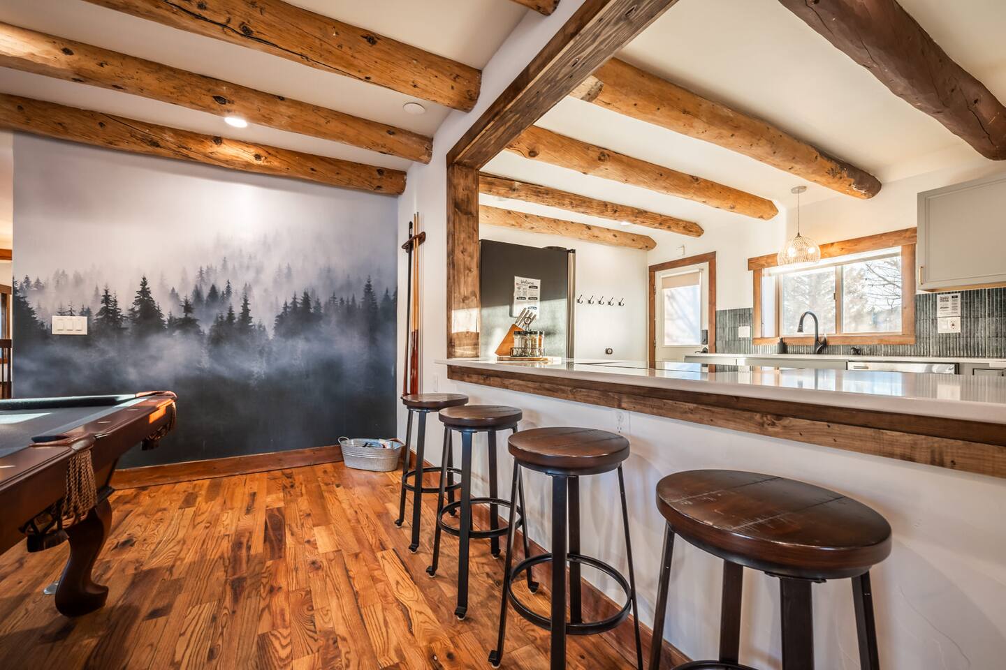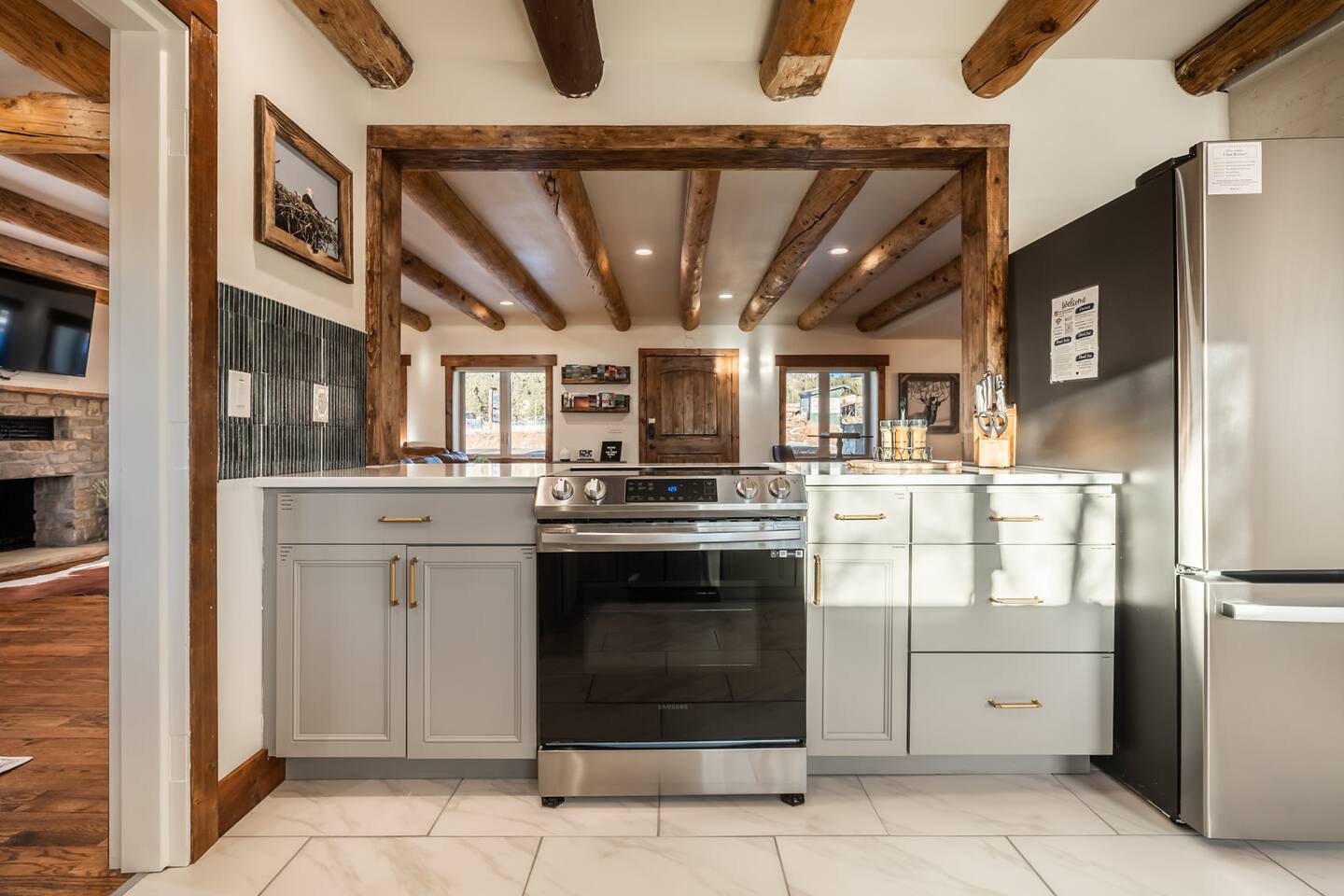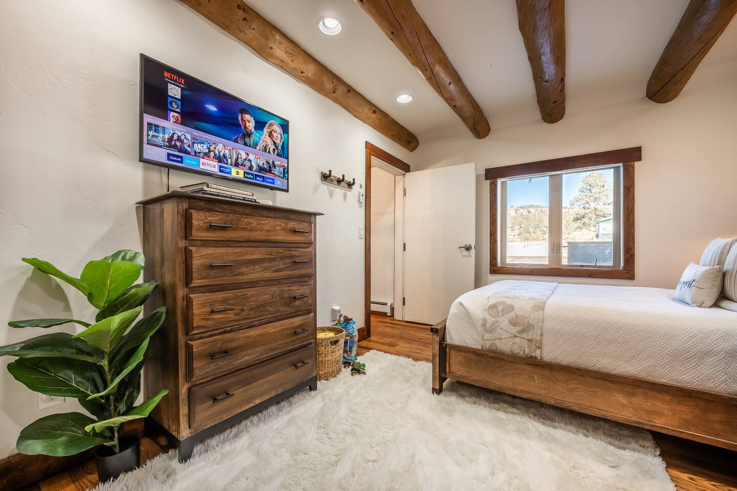 Welcome to Mountain River Lodge & Cabins, where you can experience the breathtaking beauty of the Colorado Rocky Mountains. Escape to our spacious mountain lodge, where comfort and fun come together in a truly unforgettable setting. At the heart of the home is the Great Room, featuring a stunning stone fireplace, a pool table for friendly competition, and a 65 inch Smart TV perfect for cozy movie nights. Gather around the grand dining table that seats eight, or enjoy your morning coffee at the fully stocked coffee bar. The newly renovated kitchen is fully equipped with modern appliances, a breakfast bar, and everything you need to prepare meals with ease. This 2-bedroom, 1-bath lodge offers thoughtful touches throughout. The ADA-accessible bathroom adds convenience, while the bedrooms feature plush, comfy beds and wall-mounted TVs for private relaxation. For families, the lodge is packed with games and toys, ensuring entertainment for all ages. Step outside to the incredible community patio, where you'll find a large stone fireplace, propane firepits with cozy seating, and commercial-grade grills for al fresco dining. The outdoor game hub offers everything from cornhole to pickleball, ladder golf, and more. And don’t miss the barrel sauna, perfect for unwinding as you soak in the stunning views of Lake George. Whether you're enjoying the patio under dimmable string lights or exploring the nearby Mueller State Park, this lodge offers everything you need for an unforgettable getaway. Book your stay today! ◈ Hike & Bike with Epic Views ◈ Embrace the thrill of high-altitude hiking expeditions or experience the rush of speeding down exhilarating mountain bike trails. Feel the serenity as you trek through picturesque alpine meadows or enjoy a relaxing ride along the scenic Colorado River bed. The choice is yours, and it's all right here! Looking to conquer a "fourteener"? Look no further than nearby Mueller State Park and Lost Creek Wilderness where you'll find plenty of majestic mountains towering over 10,000 feet in elevation as well as our favorite 14er, Pikes Peak. It's a must-do for any adventurer with a bucket list! But that's not all - we also have a variety of top-notch trails to explore, catering to all levels of experience. From the The famous Crags trail, to Pancake Rocks to the Dome Rock Trail, there's something for everyone. And if mountain biking is your passion, you're in luck! Our lodge is surrounded by incredible biking trails, including the Midland Trail and a ten-mile loop through the stunning northern area of Mueller State Park. Whether you're a seasoned hiker or a beginner looking for family-friendly trails, we have it all! ✼ Seamless Entry into Your Cozy Lodge ✼ No more worrying about keys or check-in restrictions. Our keyless entry system ensures a smooth arrival - simply punch in the code we've provided, and voila, you're in! When you arrive, you’ll be greeted by the charming front patio, complete with a wicker bistro table and chairs—perfect for soaking in the crisp mountain air with your morning coffee or an evening drink. As you step inside, you’ll find a welcome mat. The main living area and pool table are straight ahead, ready for you to relax and enjoy. To your right, an entry table awaits, featuring a diffuser with essential oils, a Google Home for convenience, and a photo album filled with historic images from the lodge’s days as the 11 Mile Motel in the 1950s. Above the table, you’ll discover books and materials about the local area to enrich your stay. There’s also a back entry, accessible from the shared community patio behind the lodge. This entry leads directly into the kitchen, where you’ll find coat hooks and a boot tray conveniently located to your right as you step in. We hope you feel right at home from the moment you arrive! ✼The Great Room: Game nights, Fireside Chats + Enjoying Meal Together✼ Welcome to The Great Room! This inviting space is the heart of your stay—perfect for lounging, dining, and making memories. Let’s take a journey through all it has to offer! Step into the heart of your stay—a warm and inviting space designed for relaxation, connection, and creating lasting memories. Whether you're here to unwind by the fire, enjoy a family meal, or challenge your friends to a game of pool, this space has everything you need for a cozy and fun-filled getaway. The living area invites you to sink into plush leather couches and take in the rustic charm of the stone fireplace. For extra sleeping arrangements, the queen-sized pull-out couch is ready, with linens neatly stored in the hallway closet. Entertainment is just a click away on the 65-inch Samsung Smart TV, offering DIRECTV, Hulu, Netflix, and more. You’ll find the remotes in the coffee table drawer, along with spare batteries, ensuring your movie nights go uninterrupted. A basket of floor cushions sits by the fireplace, perfect for additional cozy seating. Adding to the charm is the wood-burning fireplace, ideal for chilly evenings. Firewood is often available off the back patio near the outdoor fireplace. Please use the fireplace tools and guard for safety, and ensure the fire is fully extinguished before bedtime or leaving the house. Once the ashes have cooled, you can safely dispose of them in the ash bucket provided. Large wood-trimmed windows offer stunning views, or you can lower the blinds for a more intimate, evening ambiance. The pool table area adds a touch of fun to the space. Set beneath rustic wooden beams and a vibrant forest mural, it’s the perfect spot for friendly competition. Pool cues are neatly stored on the wall rack, with balls and accessories conveniently tucked nearby. To complete the experience, a Google Home speaker is located by the entry door—just say, “Hey Google, play music,” to set the mood. A high-top table with bar stools provides a great spot for snacks or cheering on players, and the open window connecting the kit