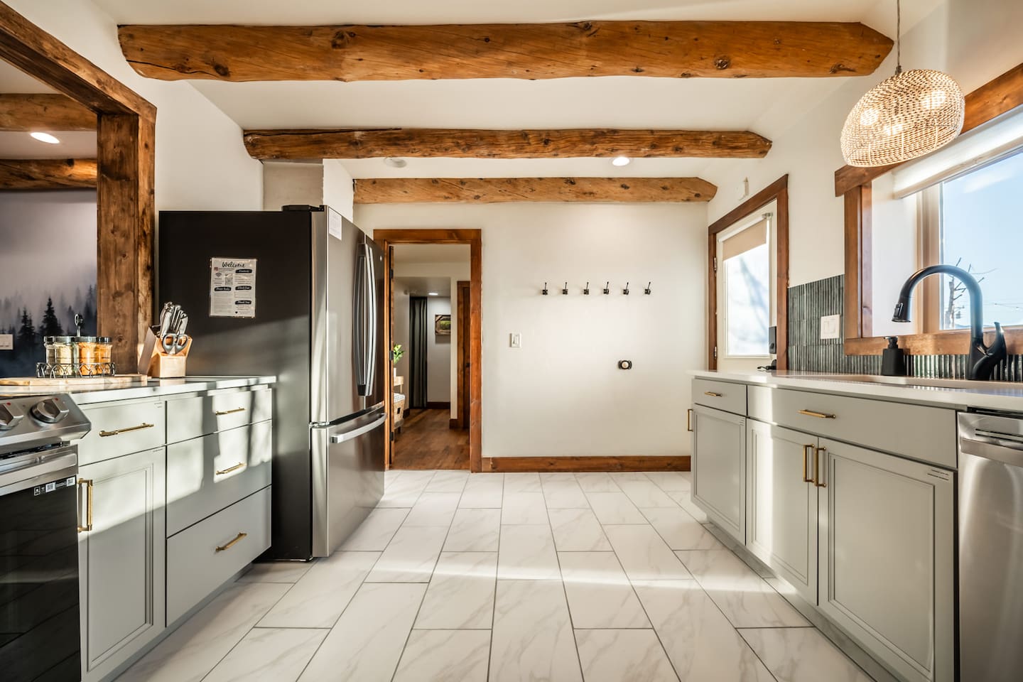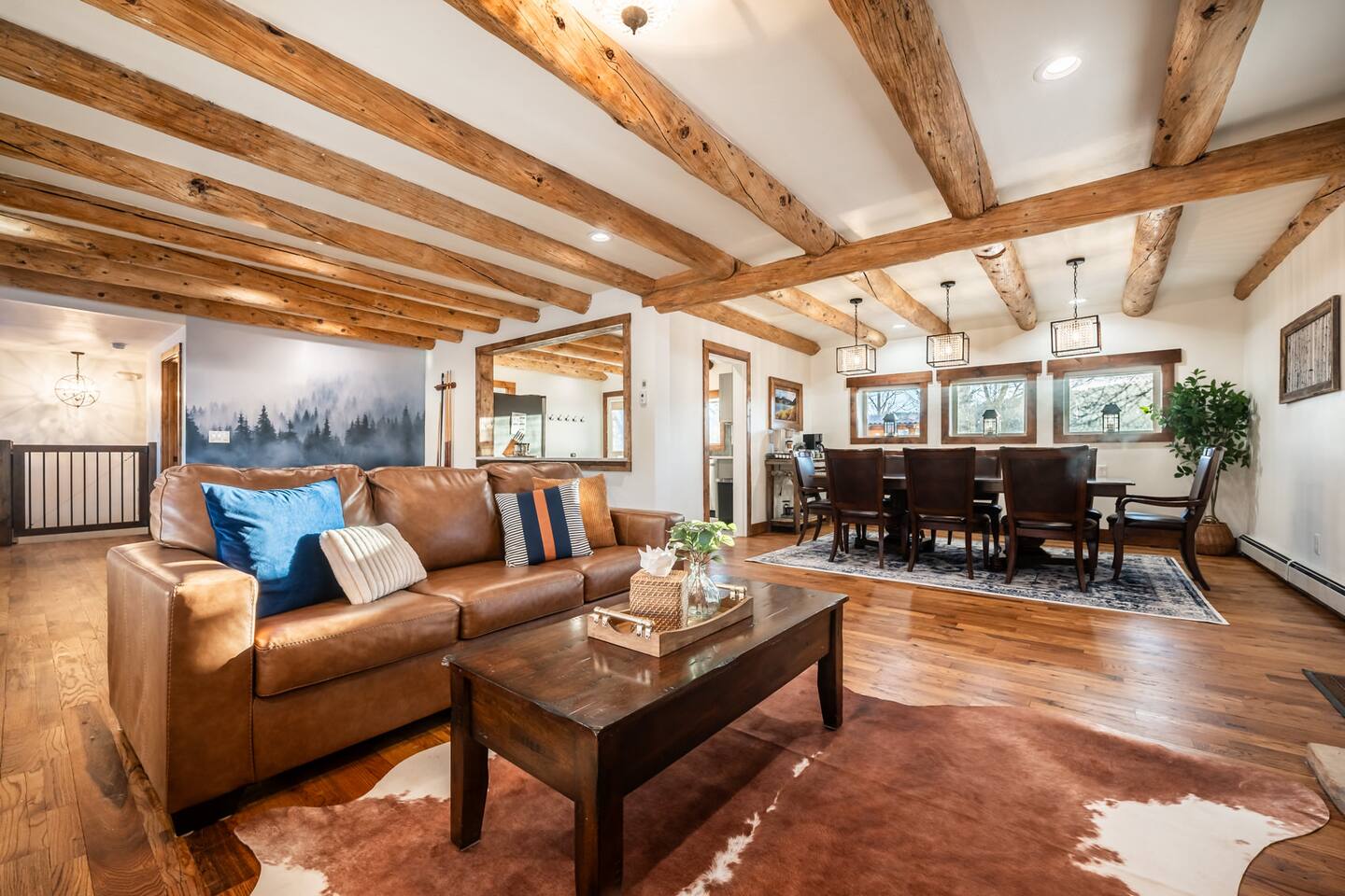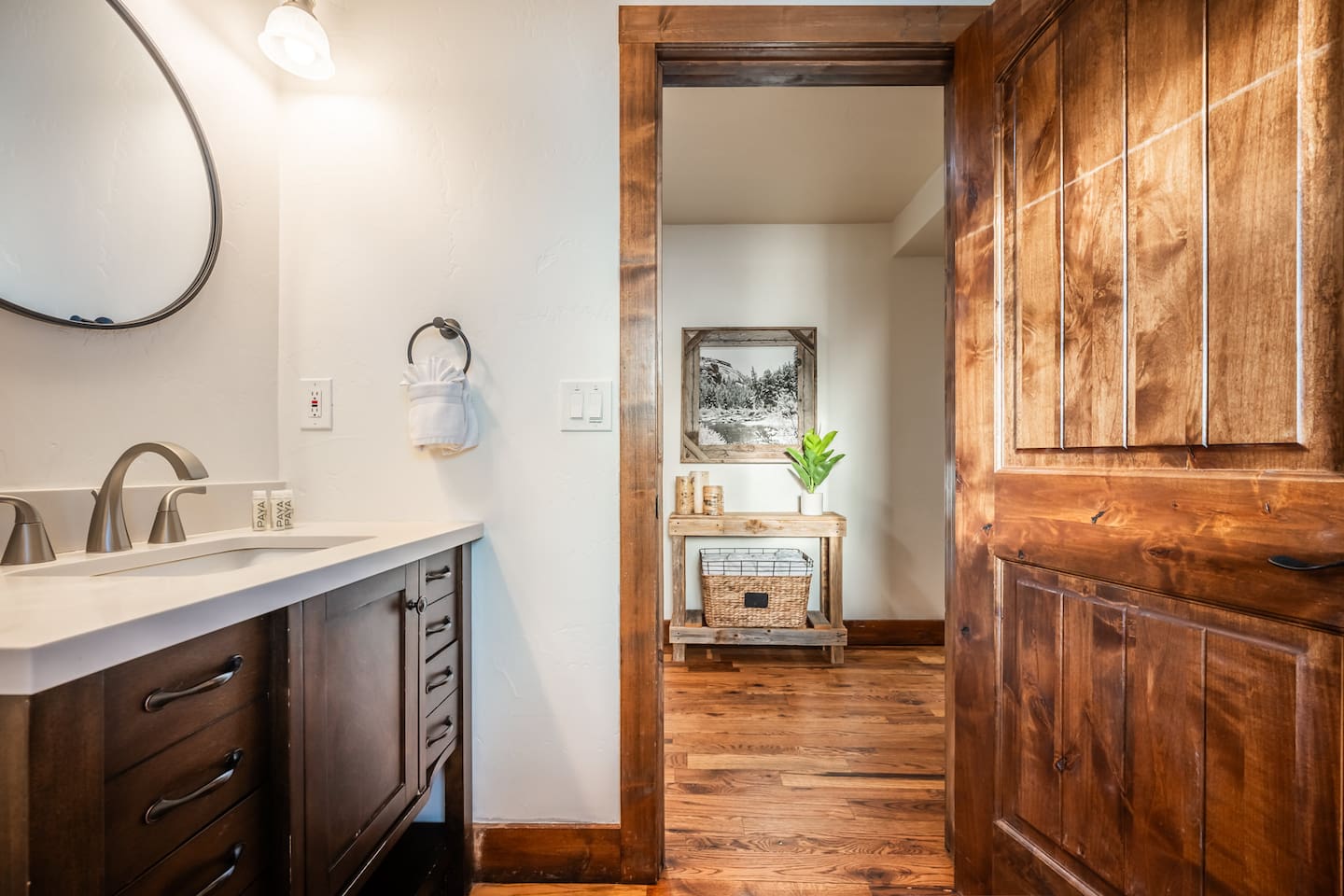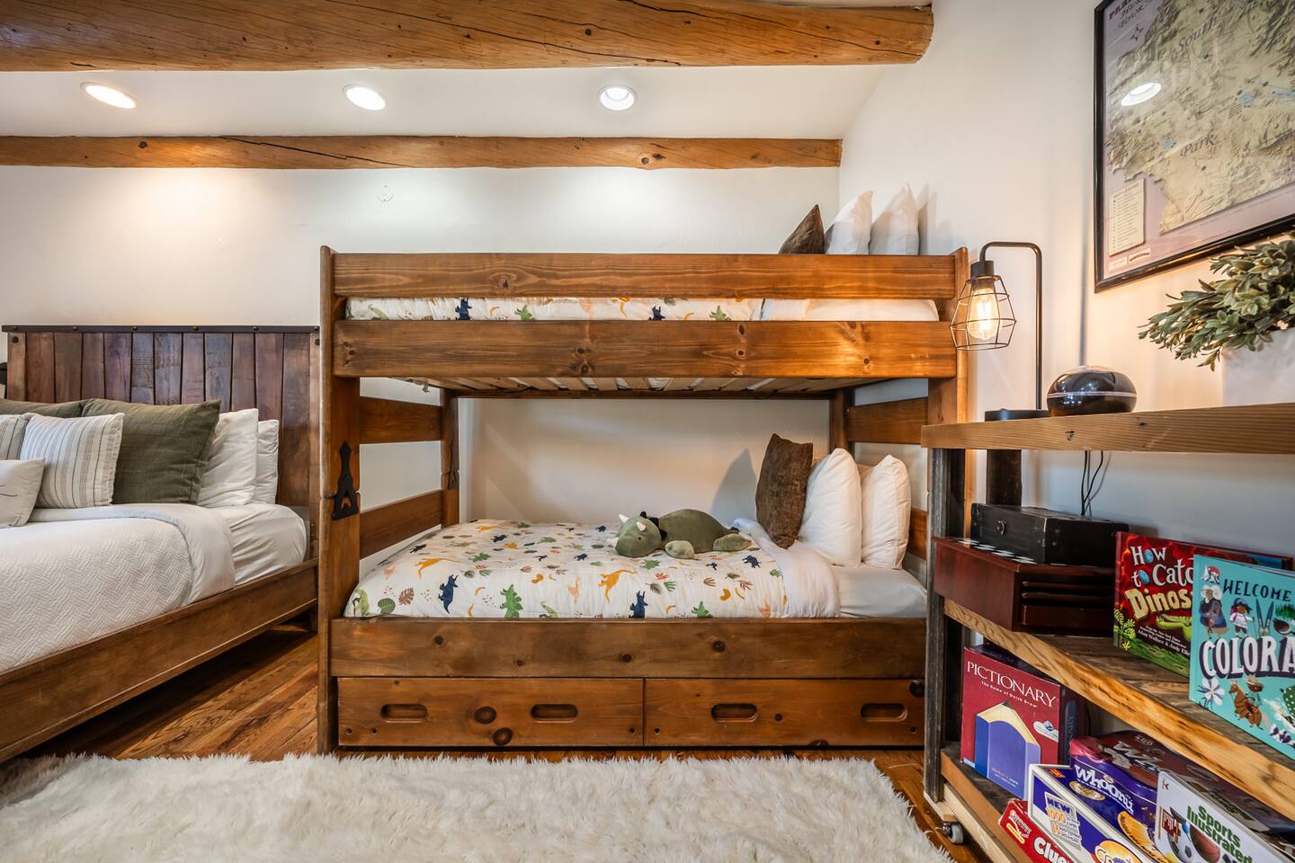 Welcome to Mountain River Lodge & Cabins, where you can experience the breathtaking beauty of the Colorado Rocky Mountains. Escape to our spacious mountain lodge, where comfort and fun come together in a truly unforgettable setting. At the heart of the home is the Great Room, featuring a stunning stone fireplace, a pool table for friendly competition, and a 65 inch Smart TV perfect for cozy movie nights. Gather around the grand dining table that seats eight, or enjoy your morning coffee at the fully stocked coffee bar. The newly renovated kitchen is fully equipped with modern appliances, a breakfast bar, and everything you need to prepare meals with ease. This 2-bedroom, 1-bath lodge offers thoughtful touches throughout. The ADA-accessible bathroom adds convenience, while the bedrooms feature plush, comfy beds and wall-mounted TVs for private relaxation. For families, the lodge is packed with games and toys, ensuring entertainment for all ages. Step outside to the incredible community patio, where you'll find a large stone fireplace, propane firepits with cozy seating, and commercial-grade grills for al fresco dining. The outdoor game hub offers everything from cornhole to pickleball, ladder golf, and more. And don’t miss the barrel sauna, perfect for unwinding as you soak in the stunning views of Lake George. Whether you're enjoying the patio under dimmable string lights or exploring the nearby Mueller State Park, this lodge offers everything you need for an unforgettable getaway. Book your stay today! ◈ Hike & Bike with Epic Views ◈ Embrace the thrill of high-altitude hiking expeditions or experience the rush of speeding down exhilarating mountain bike trails. Feel the serenity as you trek through picturesque alpine meadows or enjoy a relaxing ride along the scenic Colorado River bed. The choice is yours, and it's all right here! Looking to conquer a "fourteener"? Look no further than nearby Mueller State Park and Lost Creek Wilderness where you'll find plenty of majestic mountains towering over 10,000 feet in elevation as well as our favorite 14er, Pikes Peak. It's a must-do for any adventurer with a bucket list! But that's not all - we also have a variety of top-notch trails to explore, catering to all levels of experience. From the The famous Crags trail, to Pancake Rocks to the Dome Rock Trail, there's something for everyone. And if mountain biking is your passion, you're in luck! Our lodge is surrounded by incredible biking trails, including the Midland Trail and a ten-mile loop through the stunning northern area of Mueller State Park. Whether you're a seasoned hiker or a beginner looking for family-friendly trails, we have it all! ✼ Seamless Entry into Your Cozy Lodge ✼ No more worrying about keys or check-in restrictions. Our keyless entry system ensures a smooth arrival - simply punch in the code we've provided, and voila, you're in! When you arrive, you’ll be greeted by the charming front patio, complete with a wicker bistro table and chairs—perfect for soaking in the crisp mountain air with your morning coffee or an evening drink. As you step inside, you’ll find a welcome mat. The main living area and pool table are straight ahead, ready for you to relax and enjoy. To your right, an entry table awaits, featuring a diffuser with essential oils, a Google Home for convenience, and a photo album filled with historic images from the lodge’s days as the 11 Mile Motel in the 1950s. Above the table, you’ll discover books and materials about the local area to enrich your stay. There’s also a back entry, accessible from the shared community patio behind the lodge. This entry leads directly into the kitchen, where you’ll find coat hooks and a boot tray conveniently located to your right as you step in. We hope you feel right at home from the moment you arrive! ✼The Great Room: Game nights, Fireside Chats + Enjoying Meal Together✼ Welcome to The Great Room! This inviting space is the heart of your stay—perfect for lounging, dining, and making memories. Let’s take a journey through all it has to offer! Step into the heart of your stay—a warm and inviting space designed for relaxation, connection, and creating lasting memories. Whether you're here to unwind by the fire, enjoy a family meal, or challenge your friends to a game of pool, this space has everything you need for a cozy and fun-filled getaway. The living area invites you to sink into plush leather couches and take in the rustic charm of the stone fireplace. For extra sleeping arrangements, the queen-sized pull-out couch is ready, with linens neatly stored in the hallway closet. Entertainment is just a click away on the 65-inch Samsung Smart TV, offering DIRECTV, Hulu, Netflix, and more. You’ll find the remotes in the coffee table drawer, along with spare batteries, ensuring your movie nights go uninterrupted. A basket of floor cushions sits by the fireplace, perfect for additional cozy seating. Adding to the charm is the wood-burning fireplace, ideal for chilly evenings. Firewood is often available off the back patio near the outdoor fireplace. Please use the fireplace tools and guard for safety, and ensure the fire is fully extinguished before bedtime or leaving the house. Once the ashes have cooled, you can safely dispose of them in the ash bucket provided. Large wood-trimmed windows offer stunning views, or you can lower the blinds for a more intimate, evening ambiance. The pool table area adds a touch of fun to the space. Set beneath rustic wooden beams and a vibrant forest mural, it’s the perfect spot for friendly competition. Pool cues are neatly stored on the wall rack, with balls and accessories conveniently tucked nearby. To complete the experience, a Google Home speaker is located by the entry door—just say, “Hey Google, play music,” to set the mood. A high-top table with bar stools provides a great spot for snacks or cheering on players, and the open window connecting the kit