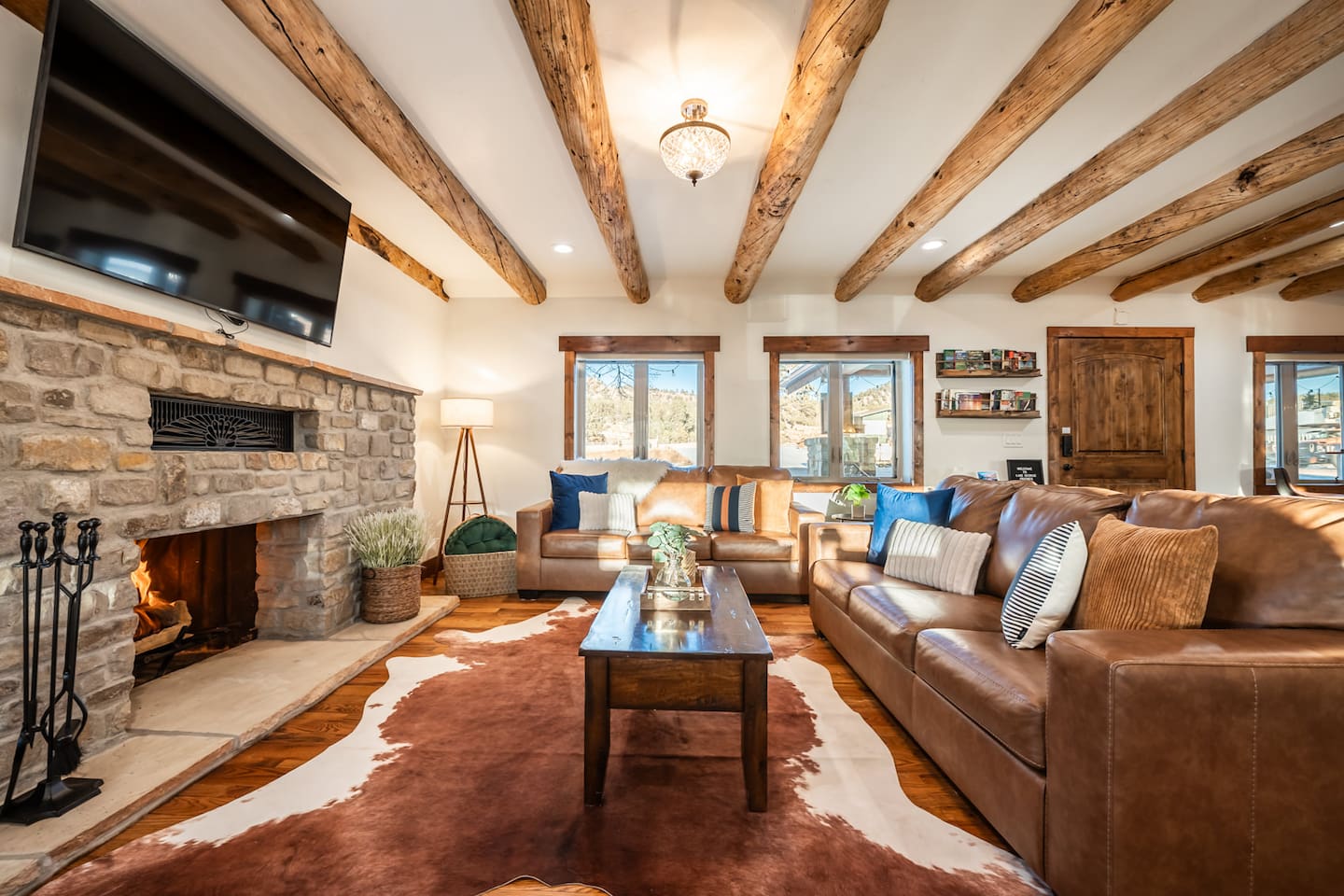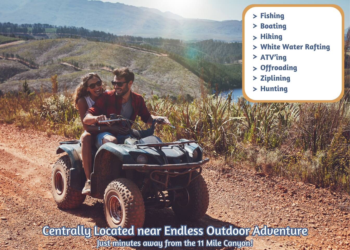 ☼Great Room with a stunning stone fireplace, pool table + 65" Smart TV ☼Bedrooms: plush beds, TVs + games ☼Equipped kitchen, grand dining table + a fully stocked coffee bar ☼ Community patio: stone fireplace, firepits, grills + barrel sauna ☼Outdoor game hub + Lake George views ☼World-Class Fly Fishing, Paddleboarding, Kayaking, & Fishing at Eleven Mile Reservoir. There's also ATVing, boating, biking, hiking, hunting, & even fossil beds to explore at the many nearby parks, trails, & canyons