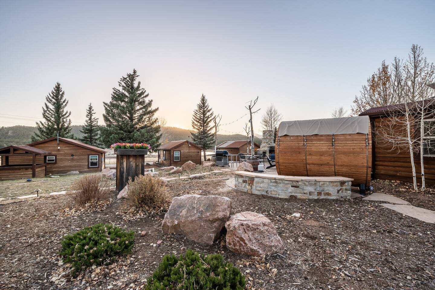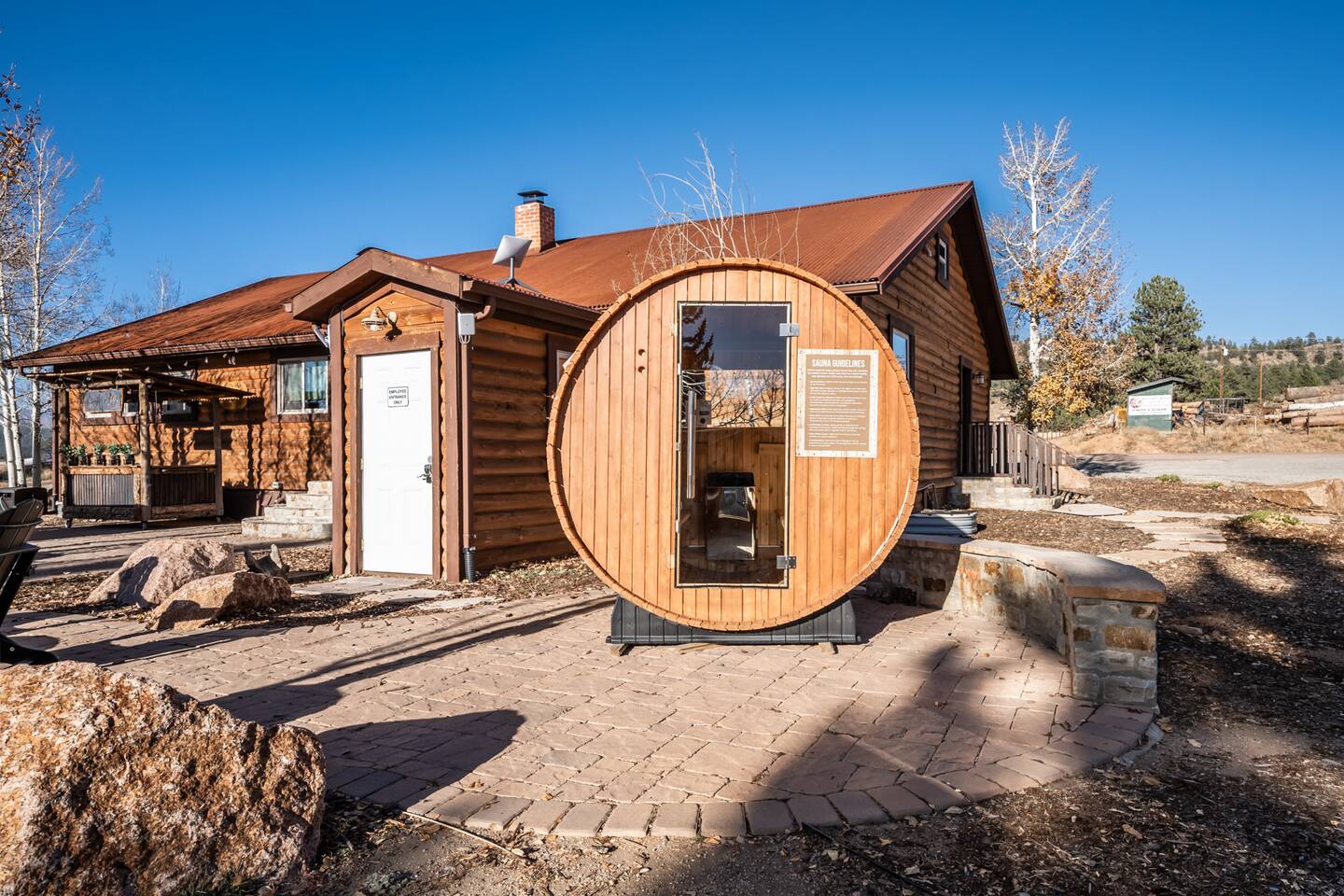 ᨒ༄ Lake View ADA Cabin in Dark Sky Zone: Exterior lighting is "Dark Sky Friendly" allowing for stunning views of the Milky Way ☾✩ ✧Kitchenette: Microwave, Coffee Maker, Mini-Fridge ✧LG Smart TV: Cable, Streaming Apps like Hulu & Netflix ✧BR: Stone Tile, Heated Toilet Seat ✧Community Patio: Outdoor Stone Fireplace, Fire pits, String Lights ✧Barrel Wood Sauna ✧Grills ✧Game hub ✧Unwind at a Nearby Spa or Explore the Outdoors: Cottonwood or Mt. Princeton Hot Springs & Spa, Pikes Peak, Cripple Creek