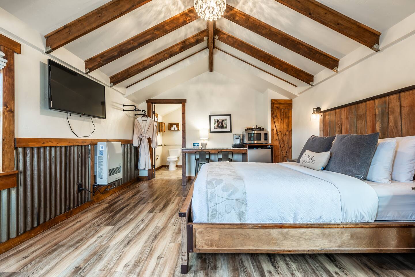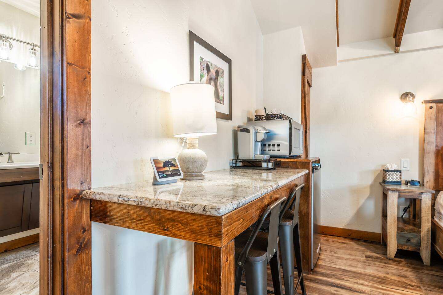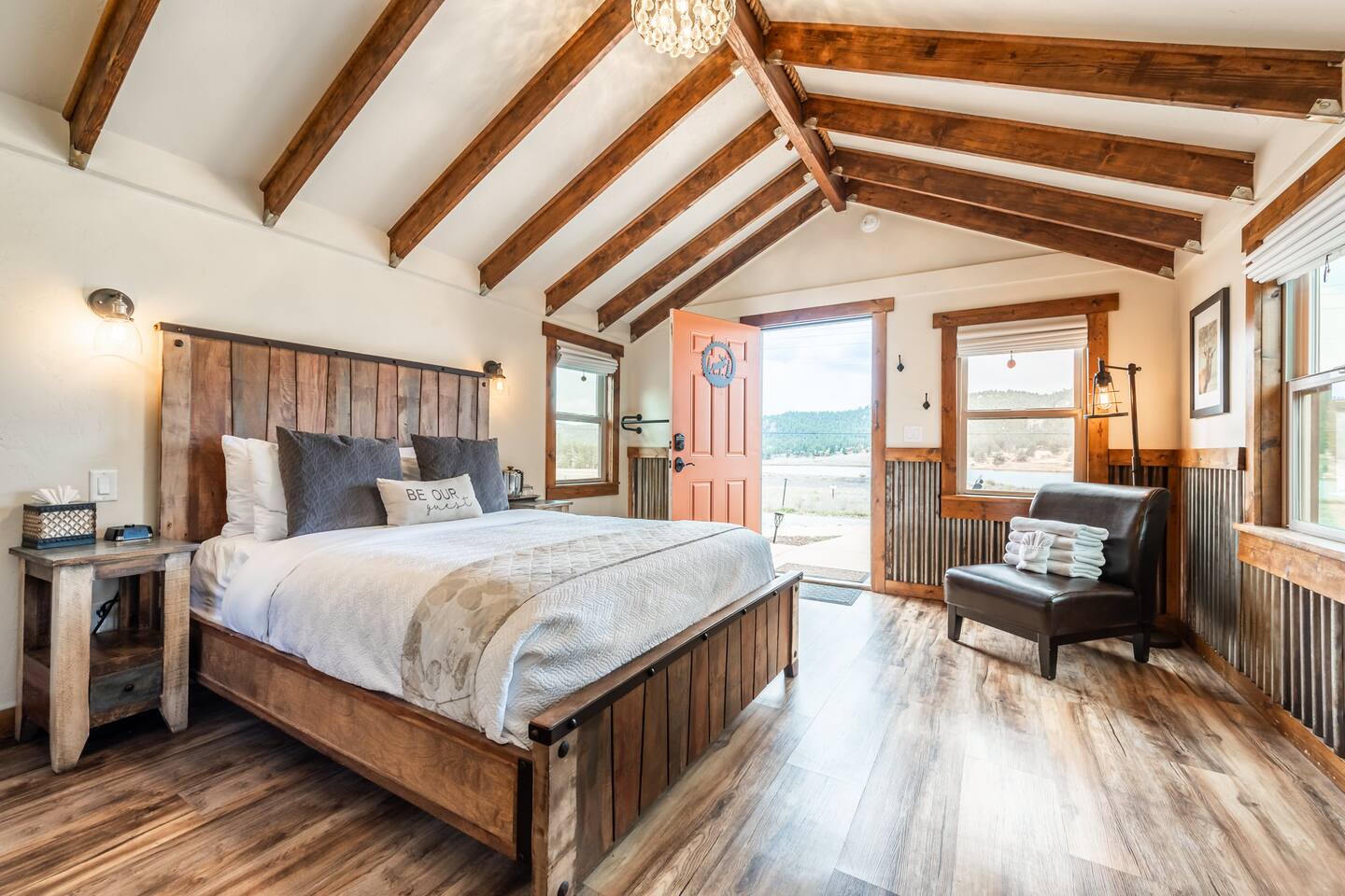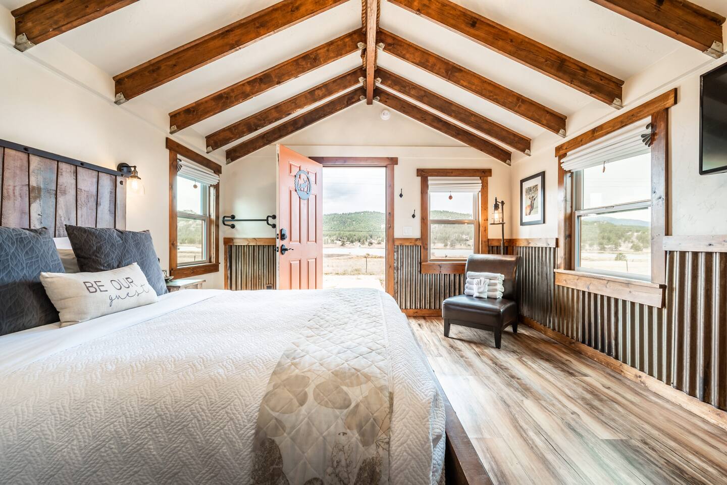 Welcome to our cozy mountain sanctuary in the picturesque Lake George, Colorado! Prepare to be captivated by the breathtaking scenery that surrounds you. Your dream mountain cabin awaits, offering amenities that will leave you feeling pampered. Step outside your cabin and embrace the wonders of nature, creating memories that will last a lifetime! After a day packed with thrills, indulge in a rejuvenating spa treatment to relax and recover. ✧ Stargaze from the Patio in this Dark Sky Zone ✧ Mountain River Lodge in Lake George, Colorado, is nestled in a designated Dark Sky Zone, making it a premier destination for stargazing enthusiasts. To preserve the breathtaking night skies, all outdoor lighting on the property has been thoughtfully upgraded to Dark Sky Friendly fixtures—including dimmable string lights on the community patio—ensuring minimal light pollution and maximum celestial views. Guests can unwind under the stars from the comfort of the beautifully designed patio, complete with propane fire pits, grills, outdoor dining areas, and a stunning stone wood-burning fireplace. With the patio overlooking Lake George, it’s the perfect setting to enjoy peaceful lake views by day and the brilliance of the Milky Way by night. ✧ Soak in Healing Waters ✧ After a thrilling day exploring the great outdoors, why not treat yourself to a soak and some blissful relaxation? Our lodge is conveniently situated just a short drive away from numerous mineral-rich, odorless, hot spring baths. These magical waters are renowned for their incredible healing properties. Experience improved circulation, reduced stress, better sleep, pain relief, and smoother skin as you immerse yourself in the rejuvenating benefits of these hot springs. With a wide variety of options available just an hour away from our lodge, you'll be diving into pure bliss in no time. ✧ Enter Your Charming Cabin Retreat ✧ As soon as you arrive, take a moment to soak in the mountain air on our inviting front porch, the bench is the perfect spot to perch! No need to worry about keys here – our state-of-the-art keyless entry system and unrestricted check-in time make accessing the cabin a breeze. Just enter the unique code we've given you, and presto! Press the "Lock/Unlock" button, and you'll hear the satisfying sound of the gears unlocking the door. Give it a few seconds to work its magic before trying the knob. Once you step inside, you’ll be greeted by a doormat, ready to keep the cabin nice and tidy. Look for the boot tray tucked away behind the door. It's the perfect spot for those wet or muddy shoes. We’ve also provided two handy hooks on the wall for hanging up your coats and jackets. ✧ Living & Bedroom Studio - Haven for Relaxation and Rejuvenation ✧ As you step inside your standalone cabin, your eyes will be drawn to a charming corner chair and a delightful floor lamp. But the centerpiece of this cabin is the queen-sized bed, promising a night of deep sleep on a comfortable pillow-top mattress. We've adorned the bed with fresh sheets, luxurious bedding, and an abundance of pillows, creating the perfect retreat after your daily adventures. To set the mood, there are two elegant wall sconces on either side of the bed, providing soft lighting for relaxation or reading. Plus, they come with convenient light switches right underneath for easy access. Your cabin offers a 43-inch LG Smart TV loaded with various apps like Hulu and Netflix for endless streaming possibilities. But if you're a fan of live channels, we've also got DirectTV access for your enjoyment. Kick back, relax, and catch up on your favorite shows or movies after an adventurous day. Now, we should warn you—sometimes our "Rocky Mountain WiFi" can be a little shaky, inviting you to pause and enjoy the serenity of our remote surroundings. We've even thrown in some classic board and card games for whenever you're craving a dose of nostalgic fun! Right next to the bed, you'll discover two handy side tables that are perfect for keeping your stuff organized. The table by the door has a super convenient tray with an ice bucket, a wine opener, and two water glasses. Inside the drawer of that table, you'll find TV remotes and spare batteries, just in case you run into any tech troubles. On the other side table, the bottom shelf is all stocked up with a channel guide to keep the entertainment going strong. And for a bit of playful fun, check out the top drawer for some awesome games. Oh, and we didn't forget about those unexpected sniffles or sneezes – there's a box of tissues waiting for you on the far side table. We haven't forgotten about your electronic needs! You'll discover a digital alarm clock equipped with power outlets and USB ports, allowing you to conveniently charge your devices while keeping track of time. And if you're in the mood for some quiet relaxation, we've got you covered with a few sets of earplugs. A small trash basket is tucked away in the corner for your convenience. ✧ Satisfy Your Cravings in Your Fully Stocked Kitchenette ✧ Our medium-sized mini-fridge is ready for your perishables and beverages. Feel free to stock it with all your favorite snacks and drinks to keep you refreshed throughout your stay. A microwave is there for your heating and reheating needs. The bar counter, can act as a workspace or dining space, complete with two stools tucked neatly underneath. It's the perfect spot to enjoy a quick bite or sip your morning coffee. We've got you covered with a Keurig coffee maker. Start your day off right with a freshly brewed cup of coffee or unwind in the evenings with a soothing tea. And to make it even better, we've thoughtfully arranged a tray with everything you need for a hot beverage including complimentary K-Cups, creamer, sugar, sugar-free sweetener, a selection of tea bags, and several on-the-go coffee cups and lids. We've left some complimentary, handmade s'mores kits for you to enjoy by the fire. A G00gle 