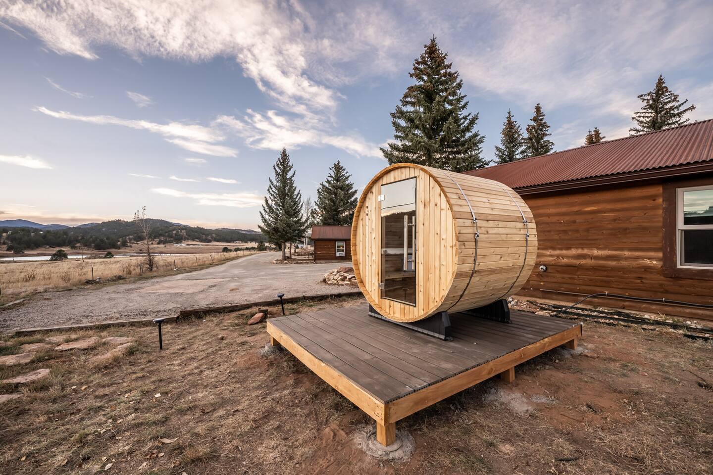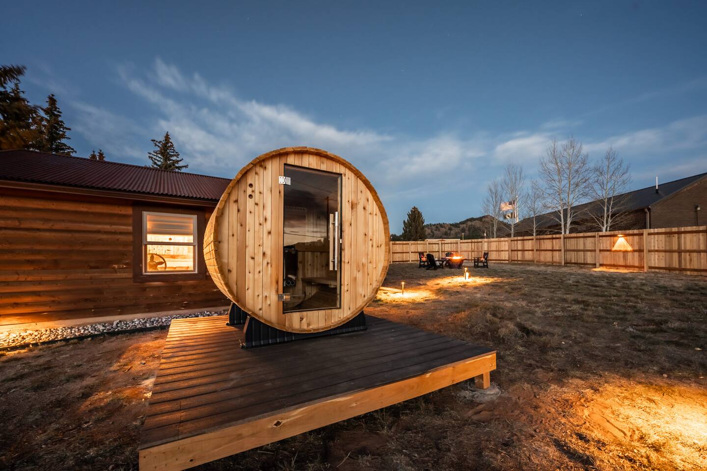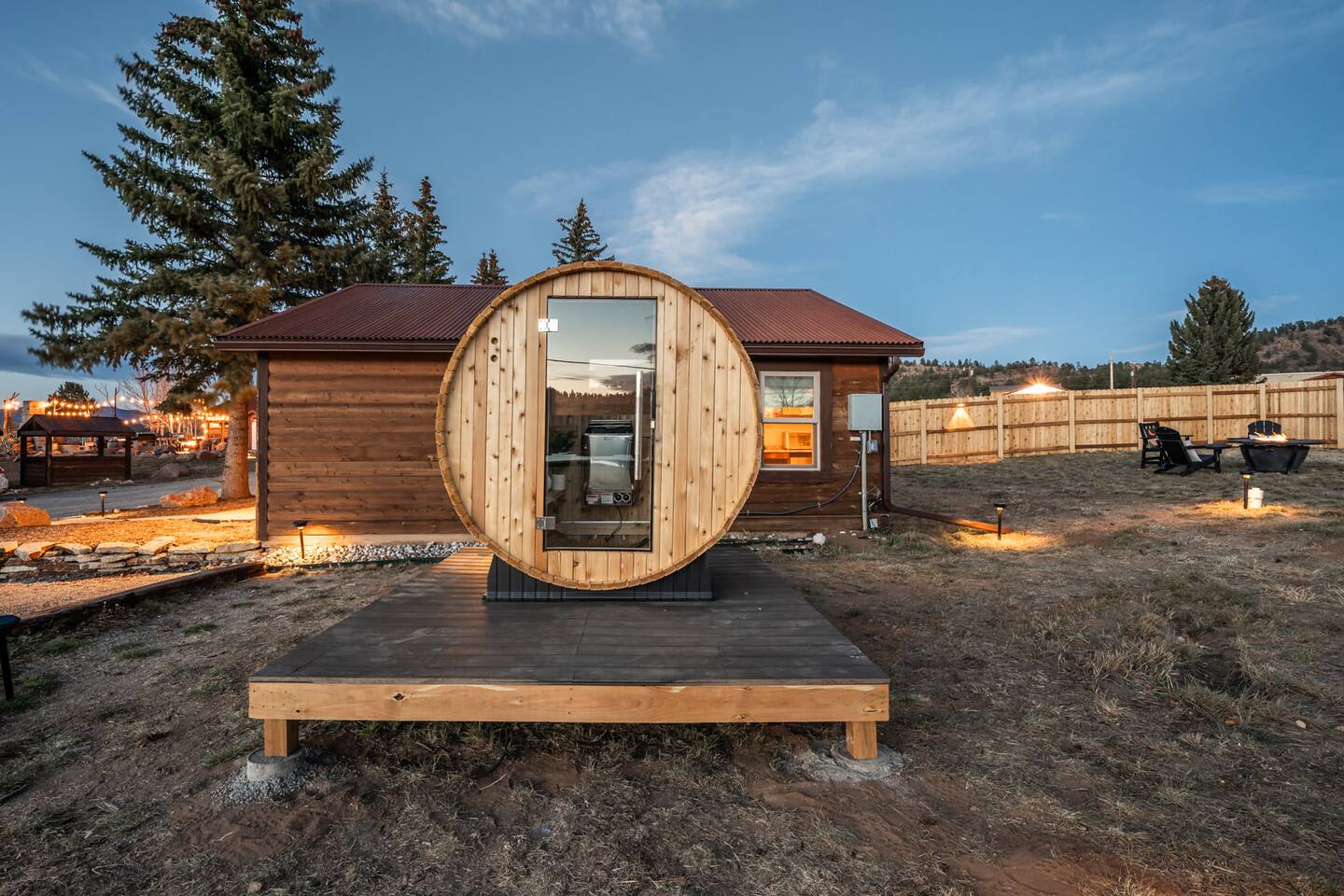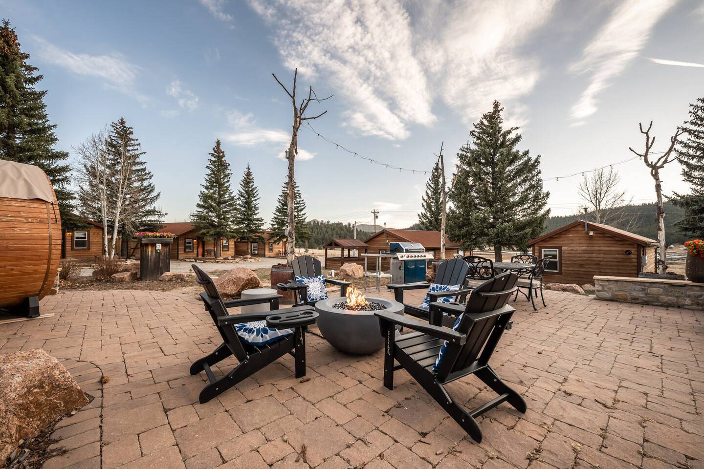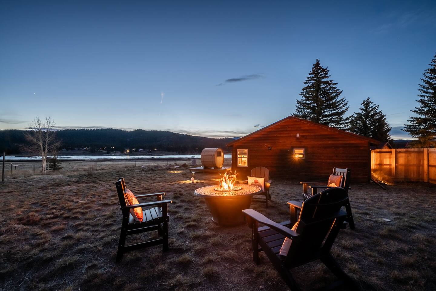 ✶Smoking: Smoking is permitted in the designated smoking area which is on patio or the dirt parking lot at the west end of the property. We kindly ask that you do not smoke near to the cabins, on the front porch, or on any of the grassy areas on the property. There is absolutely no smoking inside the cabin, and please no lit candles or open flames inside. A $250 deep cleaning fee will apply if you smoke inside the home to cover extra cleaning time. ✶Fireplace, firepits & grills: If you plan on using the fire pit or grill, please refer to the posted instructions and safety guidelines as well as current local regulations. Due to Colorado being at risk to wildfires, please always check to see if there are current fire restrictions to avoid the fire department being called and paying you a visit. Please follow posted instructions and use common sense when building and lighting a fire in the outdoor wood-burning fireplace. No liquid fuels or starters, please. Only use dry wood, and only add as much as you can allow to burn in your presence. Never leave a burning fire or active coals unattended. If you lit the fire or are the last person or group enjoying it, you are responsible to ensure it is fully extinguished. ✶Other guests: There is no office onsite to check in at, and staff are not onsite at all times. All cabins and the main lodge are individual, private rentals. You will receive info with a contactless check in procedure and your door code via text message and email on the day of check-in, as soon as your cabin is ready for you. Your cabin has its' own exclusively private fenced in backyard with fire pit and sauna; although, there is a community patio with grills, fire pit, and more. Always spread good vibes to your fellow travelers on the patio, and feel free to spark up a chat with a fellow adventurer. ✶Lake George Views: Although our views are as dazzling as a lake sunset, unfortunately, direct access to the lake is a no-go. It's privately owned and under the watchful eye of the HOA, so please do not try your luck with the sheriff. Trespassing on nearby private property will result in your reservation being terminated immediately without refund. But fear not, adventure-seeker! Only minutes away, the 11 Mile Reservoir awaits, offering a treasure trove of swimming, fishing, and hiking delights. So, pack your enthusiasm, and let the reservoir be your playground. ✶SAUNA: To use the sauna, simply fill out a liability form during the booking process and agree to follow all of the posted guidelines and operation instructions. Please remember that not following the rules or instructions at any time can lead to the cancellation of your reservation without a refund. ✶PET FRIENDLY: This is a pet-friendly listing for pets who qualify. Please message us before booking to see if your pets qualify. Damage from pets will result in loss of deposit. There is an additional flat fee for bringing a pet to cover the cleaner's time. The cost of the pet clean is collected via Airbnb. If your stay is longer than five days, we collect an additional fee depending on length of your stay once your reservation is confirmed. We are happy to host both you and your pets! ✶ADDITIONAL FEES: We have put so much work into making your stay perfect, and we value the time we have between guests to prepare for future guests. Please note that there are minimal fees for guaranteed early check ins or late check outs to cover the expenses of reworking the schedule or adding an additional cleaner to the schedule to accommodate your request. Please message us ahead of time for pricing.