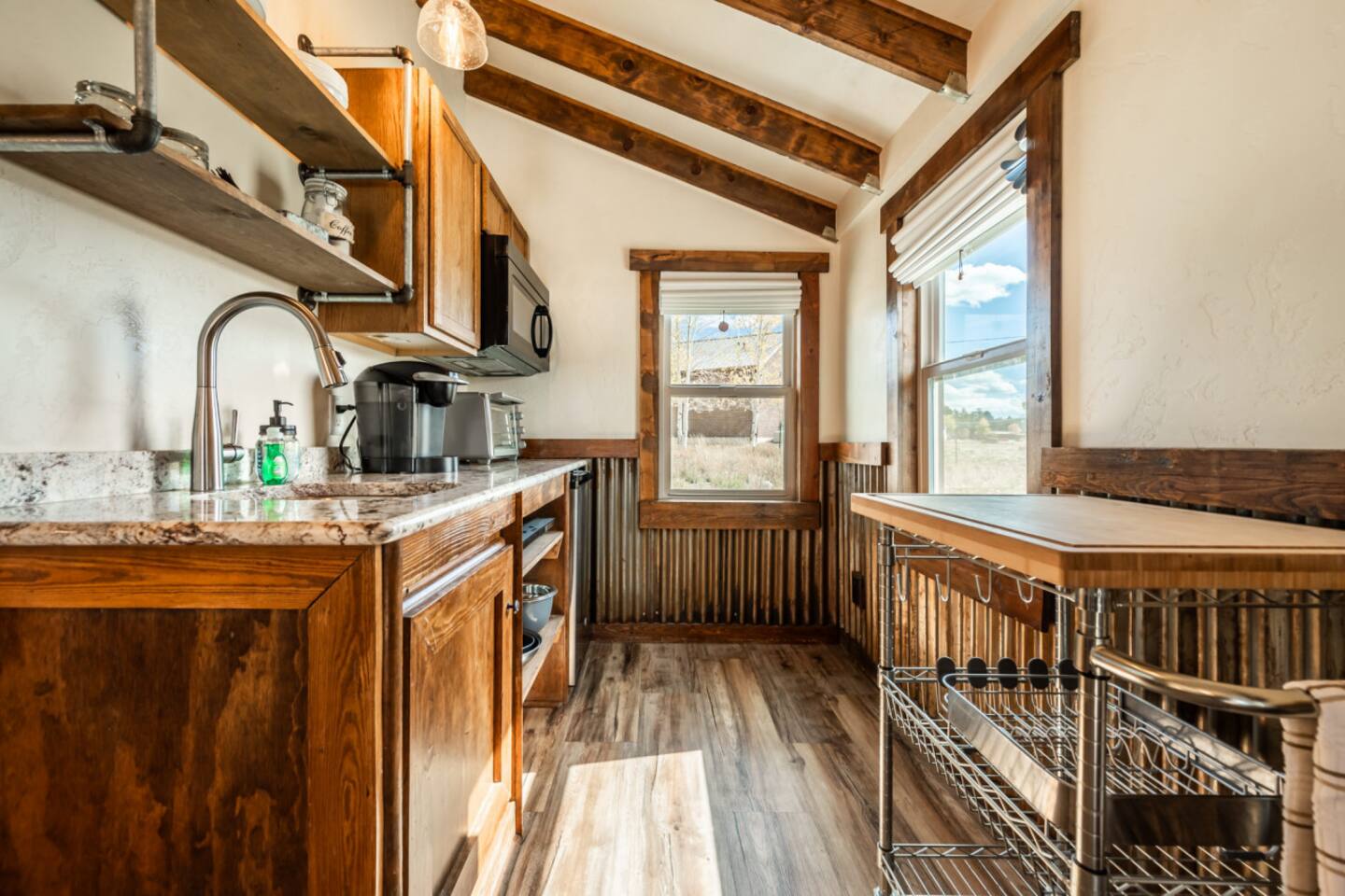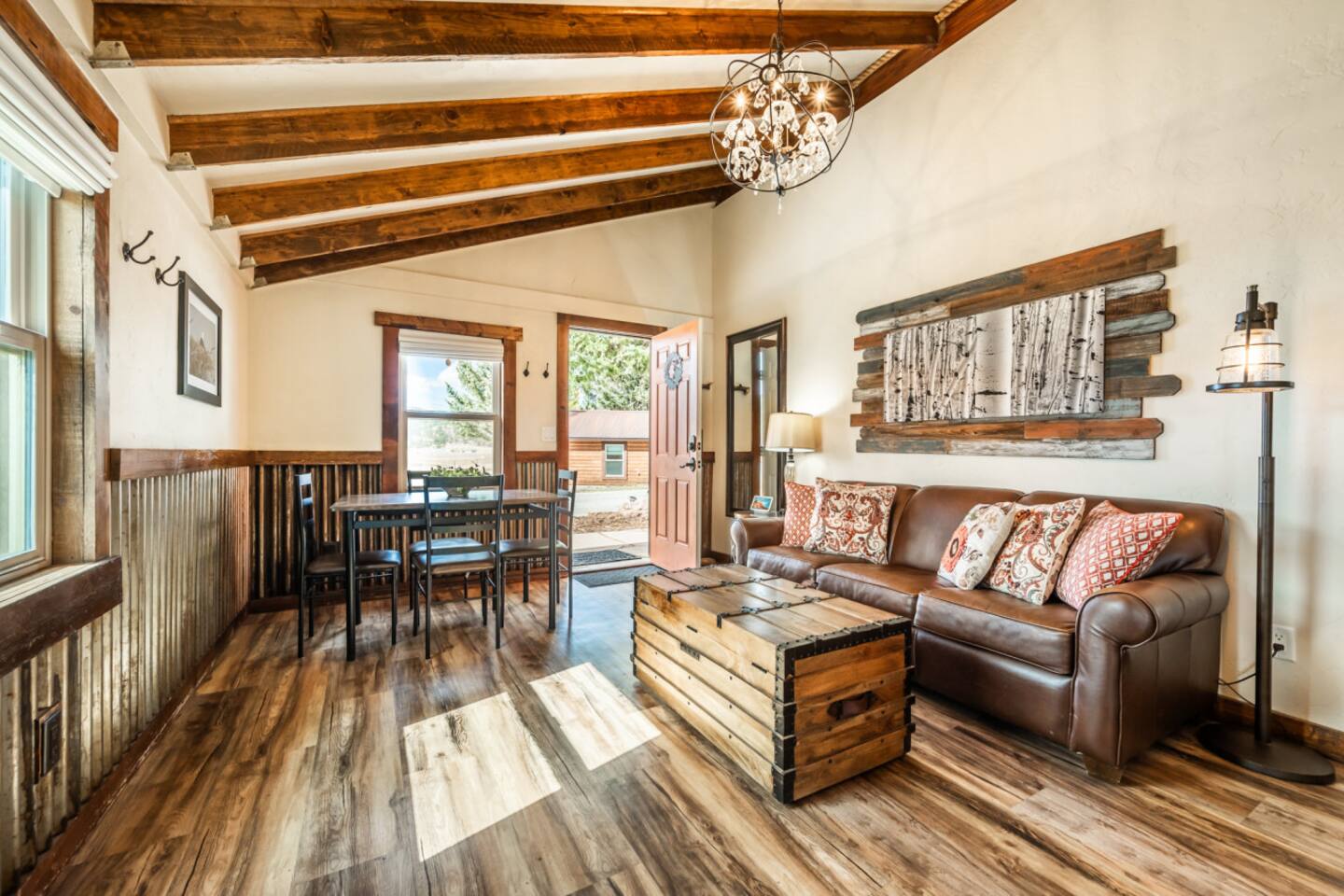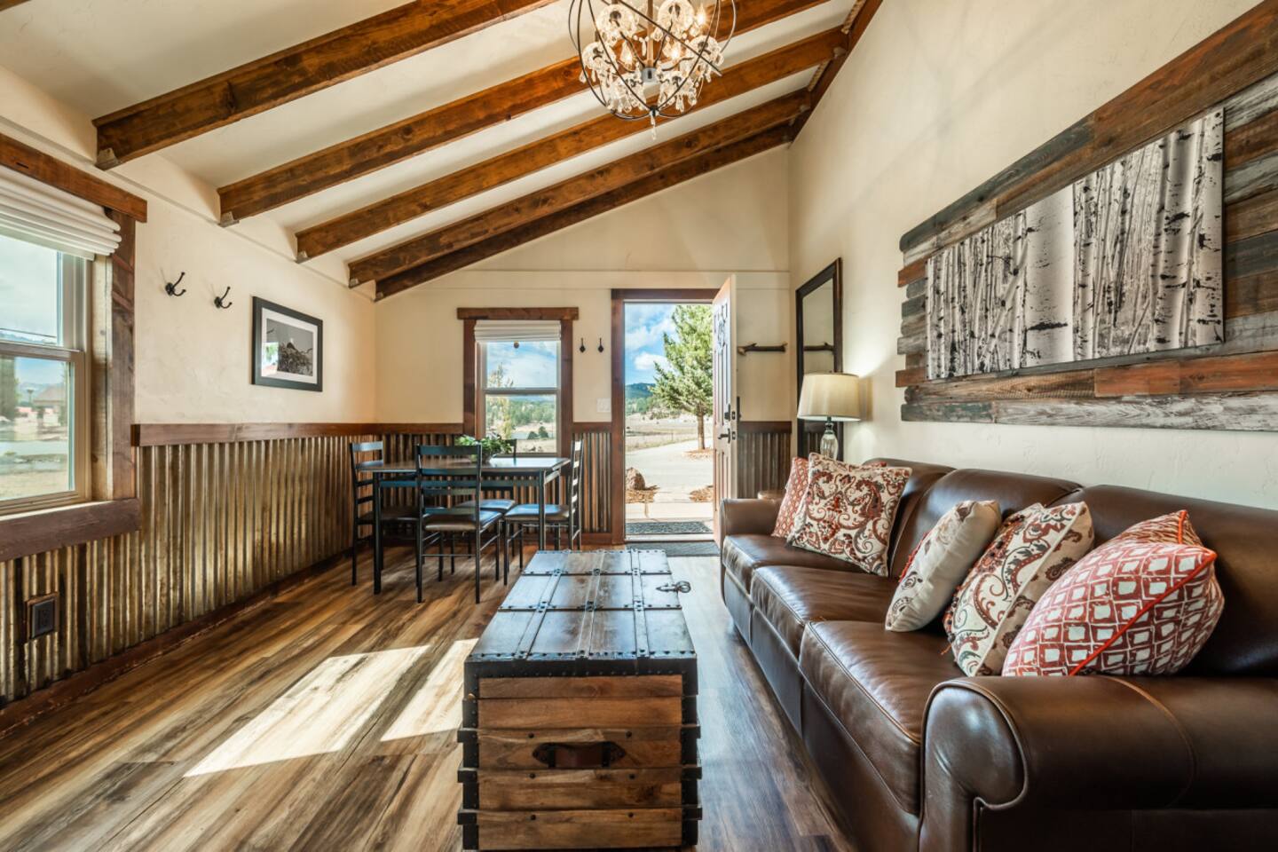 Welcome to the Mountain River Lodge & Cabins, where luxury meets adventure in the breathtaking Colorado Rockies! Experience the beauty of nature in the picturesque Lake George, CO. Treat yourself to a cozy cabin that offers all the amenities you desire for an unforgettable stay. Our charming cabins blend rustic elegance with modern comfort, providing a five-star mountain escape. If you and your family crave excitement, this vacation will exceed all your expectations! ⬩ Float in the Arkansas River ⬩ Just a short drive away from Mountain River Lodge, you'll find two premier entry points for thrilling whitewater rafting. Whether you're seeking an adrenaline-pumping extreme rafting trip or a relaxing family float, there are plenty of outfitters in the nearby towns to choose from. Experience the breathtaking Royal Gorge, Big Horn Sheep Canyon, or the world-renowned Browns Canyon, known for its thrilling class III-IV rapids. Take your pick from single-day or multi-day trips on the water! Located near Lake George, Colorado, the Arkansas River offers the best whitewater rafting experience in the state. With its massive 5,000-foot drop in the first 125 miles from its headwaters in the Colorado Rockies near the Continental Divide, this river guarantees an exhilarating ride. Rafting sections span from Buena Vista down to Canon City, where you'll find a variety of whitewater outfitters to choose from. ⬩ Easy Entry into Your Home Away From Home ⬩ Access the cabin with a keyless entry system that's a breeze to use! Just enter the special code we gave you, hit the "Lock/Unlock" button, and listen to the door unlock. Give it a few seconds to finish before you try the knob. When you're leaving, simply press the "Lock/Unlock" button to secure the door. Once inside, make yourself at home on the welcoming doormat and stash your wet or dirty shoes on the handy boot tray. Need to freshen up? We've got a full-length mirror for those last-minute touch-ups. And don't forget about the four hooks on the wall for your coats and jackets. Come on in and enjoy! ⬩ Comfort Awaits You in the Living Area ⬩ Welcome to the living area, where comfort and coziness await you. Sink into our comfy leather sofa, adorned with throw pillows, and let yourself unwind. The sofa seamlessly transforms into a queen-size bed, offering a comfortable night's sleep for larger groups. We've provided fresh linens, neatly tucked away in a rustic wooden chest coffee table, just for you. Convenience is key, so we've provided a side table with a lamp for all your reading and personal item storage. Our cabin is equipped with a 43-inch LG Smart TV, ready to provide you with endless entertainment options. Stream your favorite shows and movies through various apps or indulge in live channels with DirectTV access. Need to switch up the channel? No problem! The TV remotes are waiting for you in a handy little box on the lower shelf of the side table. And to make sure you never miss your favorite programs, we've included a DirectTV channel guide. Now, we should warn you—sometimes our "Rocky Mountain WiFi" can be a little shaky, inviting you to pause and enjoy the serenity of our remote surroundings. We've even thrown in some classic board and card games for whenever you're craving a dose of nostalgic fun! On the other side of the couch, a floor lamp casts a warm glow, creating the perfect ambiance for ultimate relaxation. Feeling a little chilly? Our gas-powered wall heater will keep you warm and toasty during your stay, feel free to adjust the temperature to your liking. Our handy stand-up fan has got your back and will keep you cool on the warmer days. ⬩ Delight in a Kitchen Stocked w/ Convenience ⬩ We've created an efficient and well-equipped space to make your culinary experience seamless during your stay. Our medium-size mini-fridge will keep your groceries and beverages fresh throughout your stay. The Cuisinart 2-burner induction cooktop allows for precise and efficient cooking, while the Keurig coffee maker ensures you can enjoy a delicious cup of hot coffee whenever you desire. But that's not all! Our kitchen is designed to make your life easier with additional features like a wire rack shelf cart and butcher block cutting board. When it comes to cookware and utensils, we've got everything you need. Pots, pans, baking sheets, mixing bowls, measuring cups - you name it, we have it. And to make cooking and serving a breeze, we've stocked up on mixing spoons, spatulas, tongs, ladles, and more. From cutting boards to cheese graters, we've thought of everything to elevate your culinary endeavors. And we haven't forgotten about the little things - essential condiments like oil, salt, pepper, and spices are all provided. We understand that cleanup is just as important as cooking. That's why we've equipped the kitchen with everything you need for easy cleanup. From a trash can and broom to a dish drying rack and cleaning supplies, we've got you covered. Calling all coffee and tea lovers! Our Keurig coffee maker will be your new best friend. Need to fill up? Grab our small stainless steel pitcher for easy water filling. Whether you need a jolt of caffeine in the morning or a soothing cup of tea in the evening, our coffee maker is ready to deliver. And we've thought of every detail to make your hot beverage experience flawless - from to-go cups and lids to complimentary K-Cups, tea bags, creamer, sugar, and sugar-free sweetener. For those who prefer a more traditional approach to coffee-making, don't worry. We've got a standard drip coffee maker and plenty of basket filters in the cabinet. Brew a larger pot of coffee to suit your personal preferences. But wait, there's more! We have a special treat for you - a complimentary s'mores kit! Get cozy by the fire and indulge in this classic campfire treat. We're here to make your cabin experience extra special! ⬩ Good Food & Good Times Await ⬩ Right next to the living area, we've got a fant