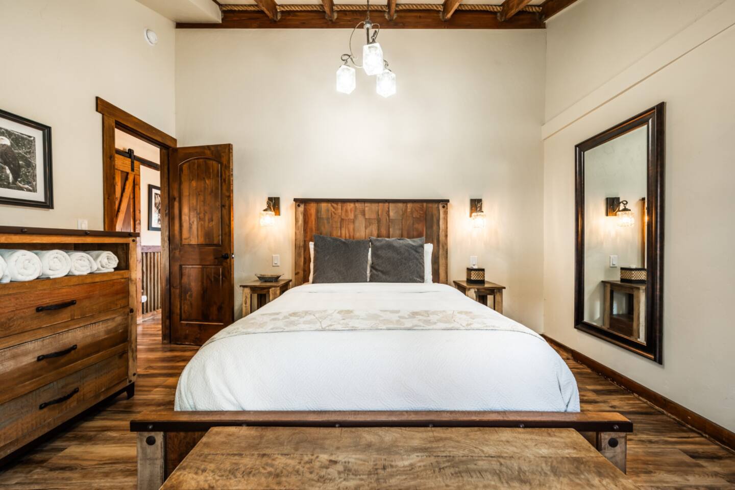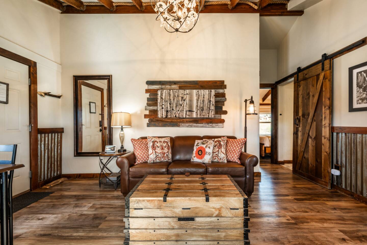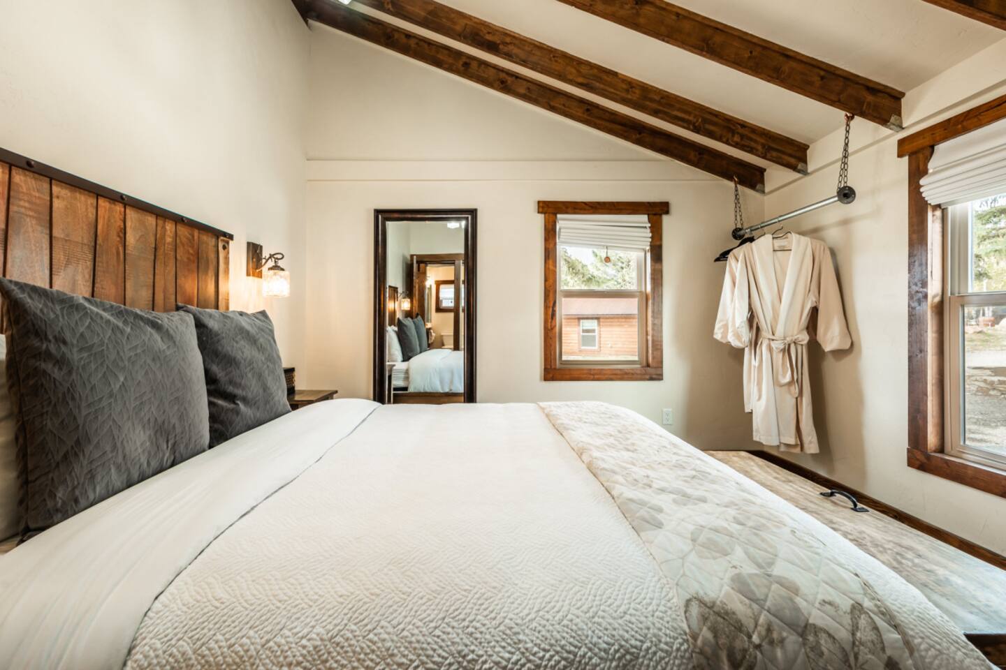 Welcome to the Mountain River Lodge & Cabins, where luxury meets adventure in the breathtaking Colorado Rockies! Experience the beauty of nature in the picturesque Lake George, CO. Treat yourself to a cozy cabin that offers all the amenities you desire for an unforgettable stay. Our charming cabins blend rustic elegance with modern comfort, providing a five-star mountain escape. If you and your family crave excitement, this vacation will exceed all your expectations! ⬩ Float in the Arkansas River ⬩ Just a short drive away from Mountain River Lodge, you'll find two premier entry points for thrilling whitewater rafting. Whether you're seeking an adrenaline-pumping extreme rafting trip or a relaxing family float, there are plenty of outfitters in the nearby towns to choose from. Experience the breathtaking Royal Gorge, Big Horn Sheep Canyon, or the world-renowned Browns Canyon, known for its thrilling class III-IV rapids. Take your pick from single-day or multi-day trips on the water! Located near Lake George, Colorado, the Arkansas River offers the best whitewater rafting experience in the state. With its massive 5,000-foot drop in the first 125 miles from its headwaters in the Colorado Rockies near the Continental Divide, this river guarantees an exhilarating ride. Rafting sections span from Buena Vista down to Canon City, where you'll find a variety of whitewater outfitters to choose from. ⬩ Easy Entry into Your Home Away From Home ⬩ Access the cabin with a keyless entry system that's a breeze to use! Just enter the special code we gave you, hit the "Lock/Unlock" button, and listen to the door unlock. Give it a few seconds to finish before you try the knob. When you're leaving, simply press the "Lock/Unlock" button to secure the door. Once inside, make yourself at home on the welcoming doormat and stash your wet or dirty shoes on the handy boot tray. Need to freshen up? We've got a full-length mirror for those last-minute touch-ups. And don't forget about the four hooks on the wall for your coats and jackets. Come on in and enjoy! ⬩ Comfort Awaits You in the Living Area ⬩ Welcome to the living area, where comfort and coziness await you. Sink into our comfy leather sofa, adorned with throw pillows, and let yourself unwind. The sofa seamlessly transforms into a queen-size bed, offering a comfortable night's sleep for larger groups. We've provided fresh linens, neatly tucked away in a rustic wooden chest coffee table, just for you. Convenience is key, so we've provided a side table with a lamp for all your reading and personal item storage. Our cabin is equipped with a 43-inch LG Smart TV, ready to provide you with endless entertainment options. Stream your favorite shows and movies through various apps or indulge in live channels with DirectTV access. Need to switch up the channel? No problem! The TV remotes are waiting for you in a handy little box on the lower shelf of the side table. And to make sure you never miss your favorite programs, we've included a DirectTV channel guide. Now, we should warn you—sometimes our "Rocky Mountain WiFi" can be a little shaky, inviting you to pause and enjoy the serenity of our remote surroundings. We've even thrown in some classic board and card games for whenever you're craving a dose of nostalgic fun! On the other side of the couch, a floor lamp casts a warm glow, creating the perfect ambiance for ultimate relaxation. Feeling a little chilly? Our gas-powered wall heater will keep you warm and toasty during your stay, feel free to adjust the temperature to your liking. Our handy stand-up fan has got your back and will keep you cool on the warmer days. ⬩ Delight in a Kitchen Stocked w/ Convenience ⬩ We've created an efficient and well-equipped space to make your culinary experience seamless during your stay. Our medium-size mini-fridge will keep your groceries and beverages fresh throughout your stay. The Cuisinart 2-burner induction cooktop allows for precise and efficient cooking, while the Keurig coffee maker ensures you can enjoy a delicious cup of hot coffee whenever you desire. But that's not all! Our kitchen is designed to make your life easier with additional features like a wire rack shelf cart and butcher block cutting board. When it comes to cookware and utensils, we've got everything you need. Pots, pans, baking sheets, mixing bowls, measuring cups - you name it, we have it. And to make cooking and serving a breeze, we've stocked up on mixing spoons, spatulas, tongs, ladles, and more. From cutting boards to cheese graters, we've thought of everything to elevate your culinary endeavors. And we haven't forgotten about the little things - essential condiments like oil, salt, pepper, and spices are all provided. We understand that cleanup is just as important as cooking. That's why we've equipped the kitchen with everything you need for easy cleanup. From a trash can and broom to a dish drying rack and cleaning supplies, we've got you covered. Calling all coffee and tea lovers! Our Keurig coffee maker will be your new best friend. Need to fill up? Grab our small stainless steel pitcher for easy water filling. Whether you need a jolt of caffeine in the morning or a soothing cup of tea in the evening, our coffee maker is ready to deliver. And we've thought of every detail to make your hot beverage experience flawless - from to-go cups and lids to complimentary K-Cups, tea bags, creamer, sugar, and sugar-free sweetener. For those who prefer a more traditional approach to coffee-making, don't worry. We've got a standard drip coffee maker and plenty of basket filters in the cabinet. Brew a larger pot of coffee to suit your personal preferences. But wait, there's more! We have a special treat for you - a complimentary s'mores kit! Get cozy by the fire and indulge in this classic campfire treat. We're here to make your cabin experience extra special! ⬩ Good Food & Good Times Await ⬩ Right next to the living area, we've got a fant