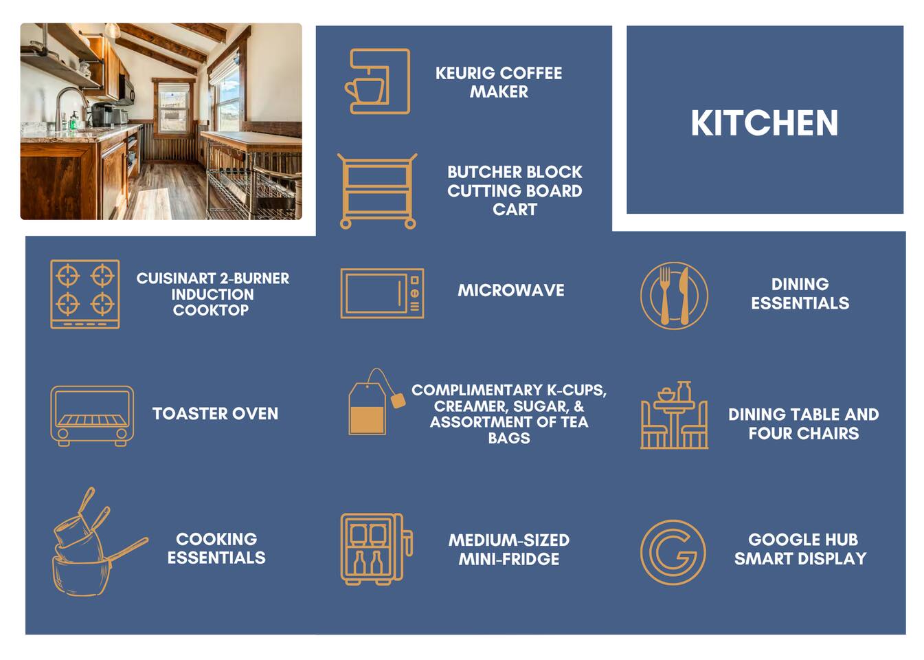 - Kitchen Space where guests can cook their own meals